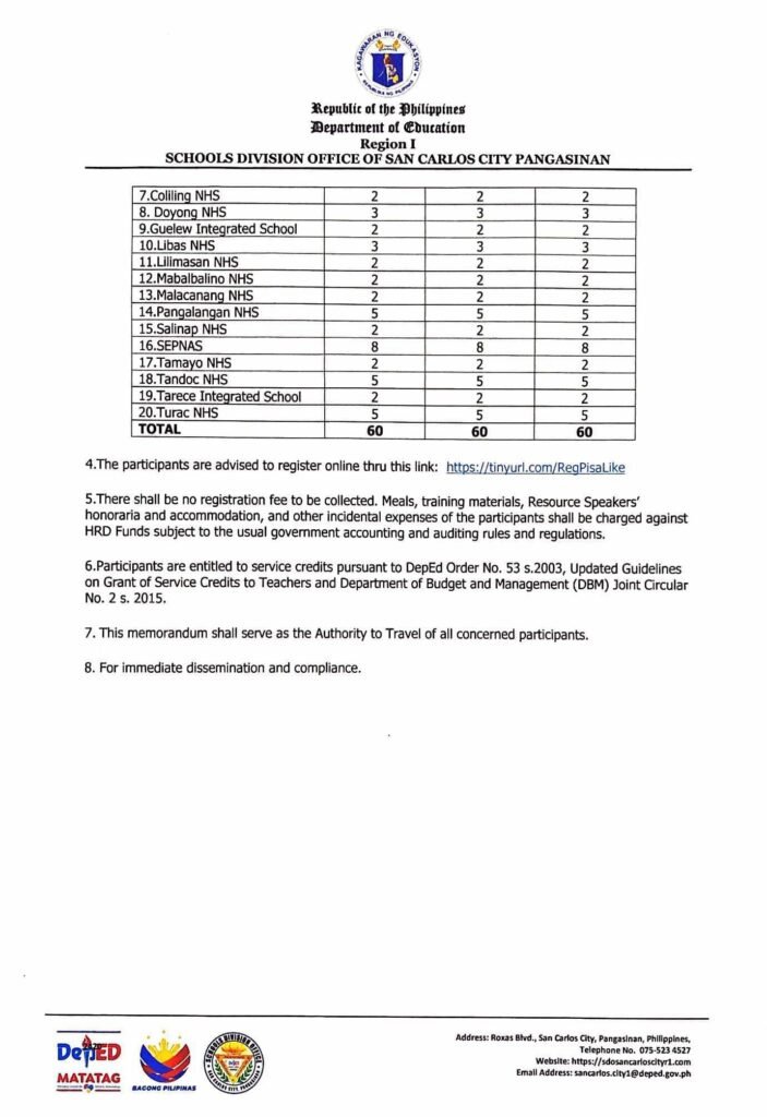 Division Memorandum No. 023 s, 2025 – Division Training Workshop on the Development and Integration of PISA-Like Questions in English, Science, and Mathematics
