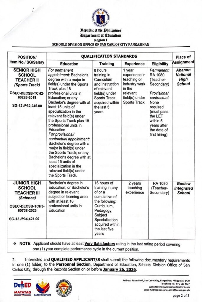 Division Memorandum No. 023 s, 2026 – NOTICE OF VACANT POSITIONS