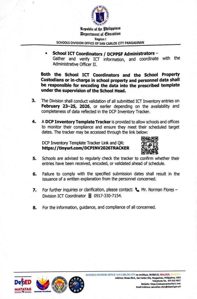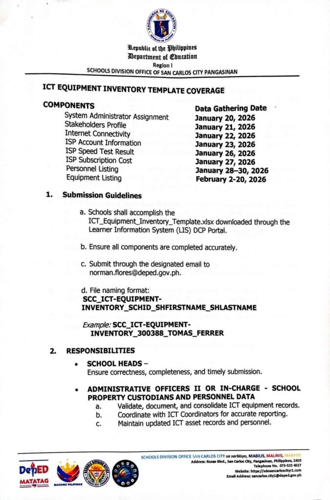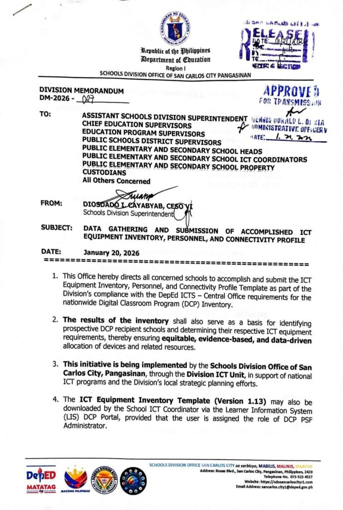Division Memorandum No. 027 s, 2026 – DATA GATHERING AND SUBMISSION OF ACCOMPLISHED ICT EQUIPMENT INVENTORY, PERSONNEL, AND CONNECTIVITY PROFILE
