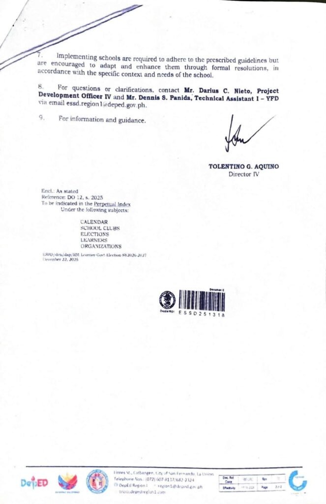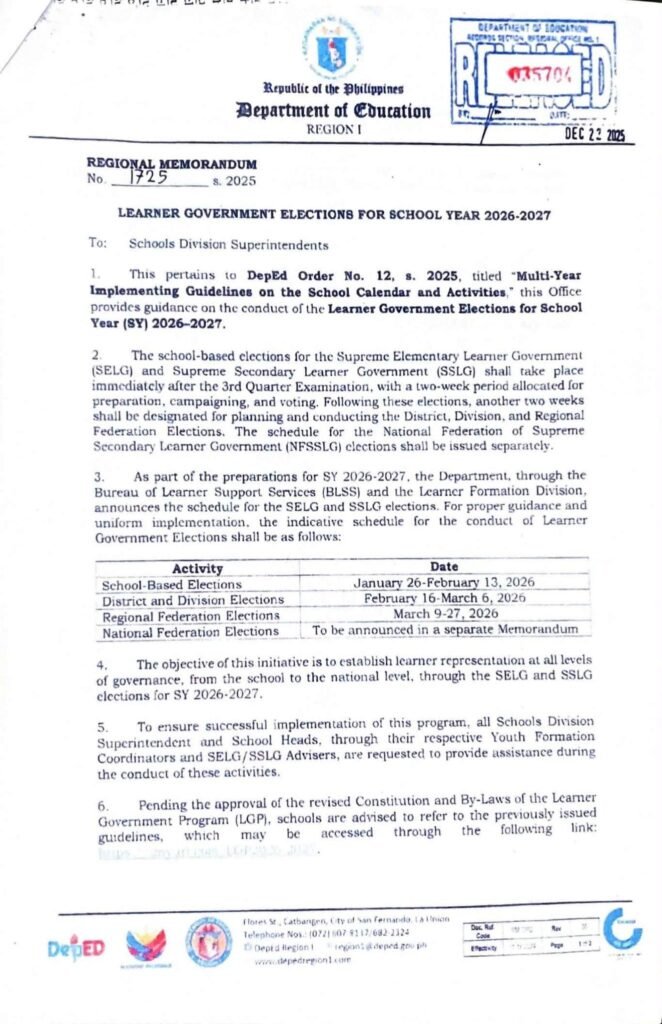 Division Memorandum No. 039 s, 2026 – Conduct of Learner Government Elections for School Year 2026-2027