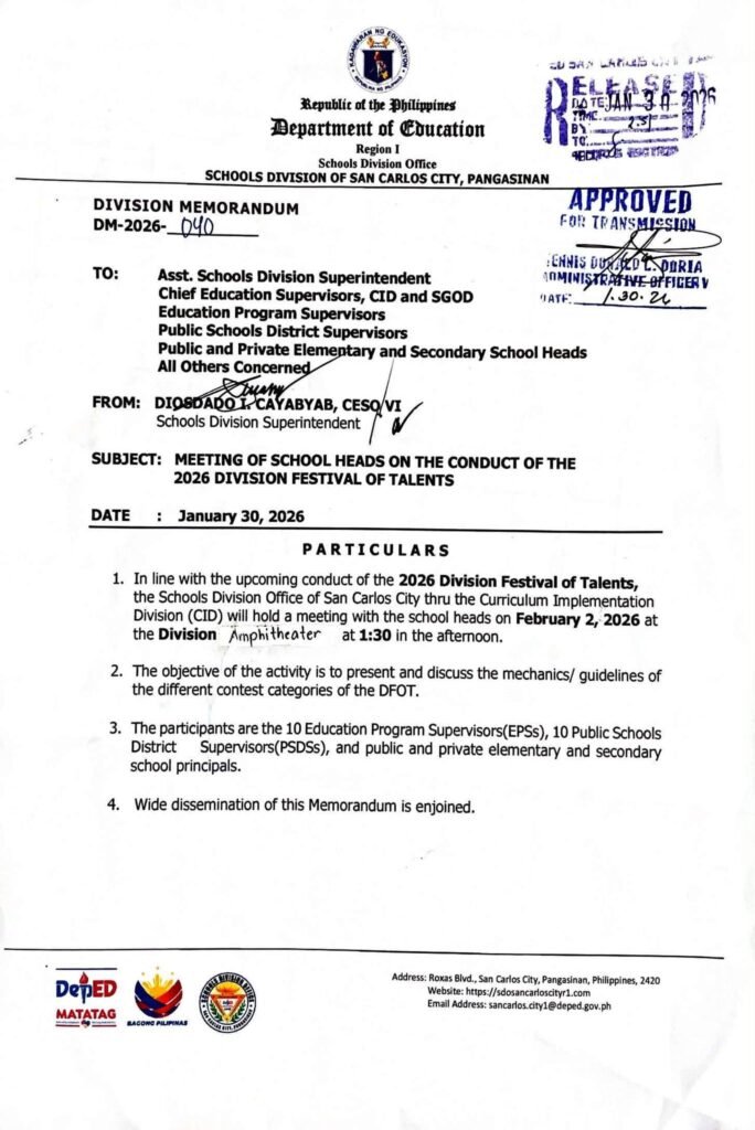 Division Memorandum No. 040 s, 2026 β ππππππ ππ ππππππ πππππππππ ππ πππ-πππ ππππππ ππππ