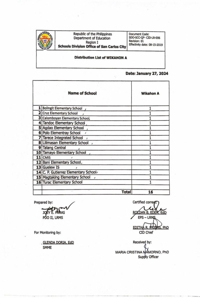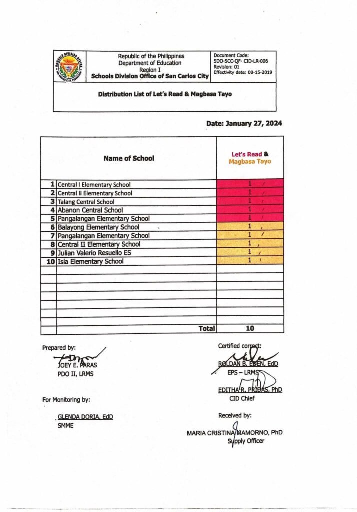 Division Memorandum No. 053 s, 2025 – DISTRIBUTION OF READING PACKAGES FOR THE READING PROGRAM AT PUBLIC ELEMENTARY SCHOOLS – SCHOOLS DIVISION OFFICE OF SAN CARLOS CITY