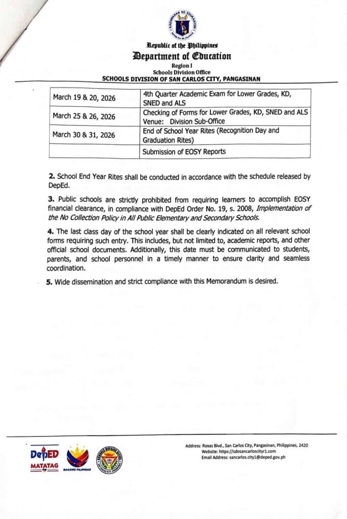 • Division Memorandum No. 055 s, 2026 – END OF SCHOOL YEAR ACTIVITIES