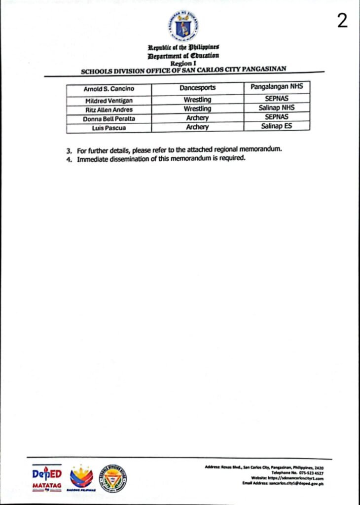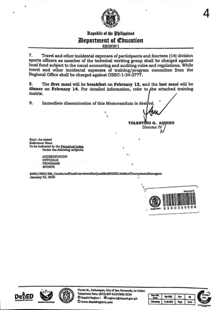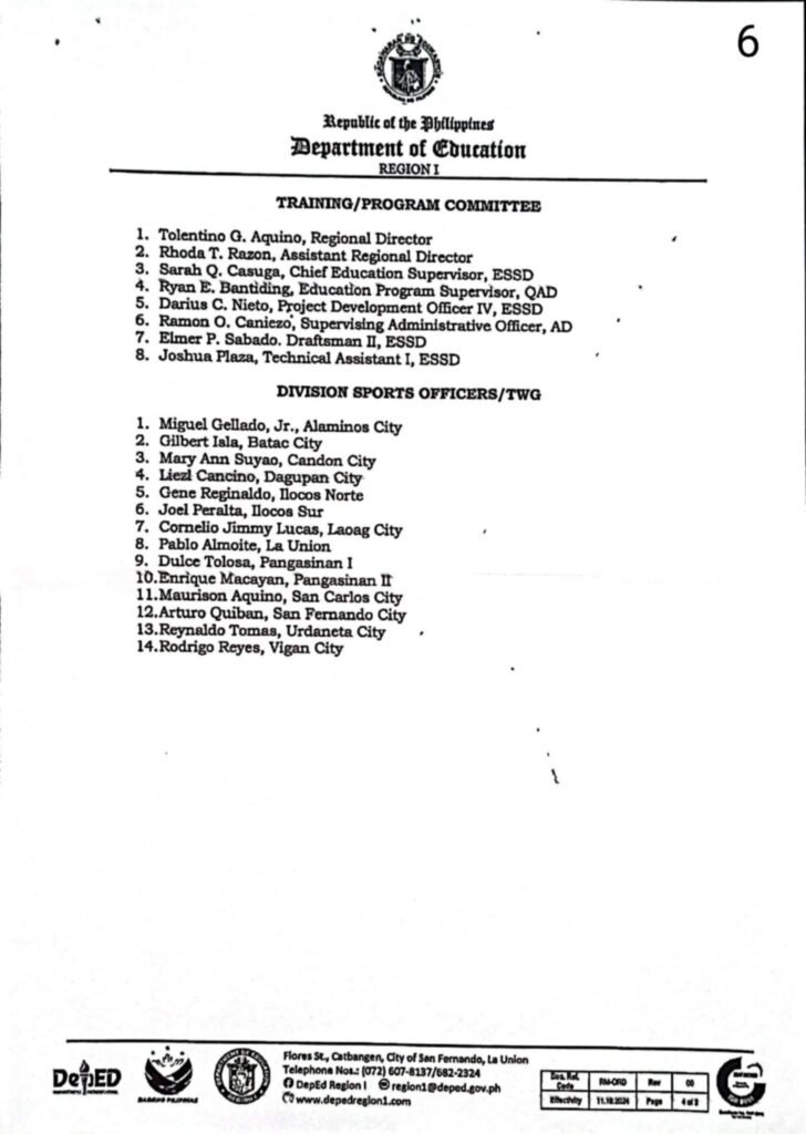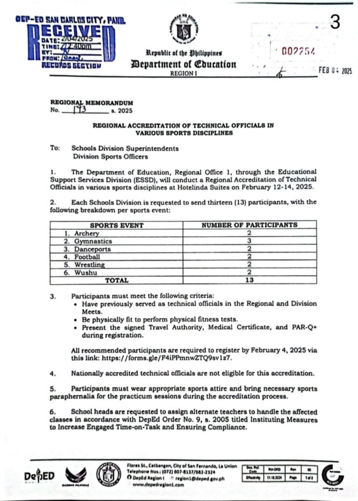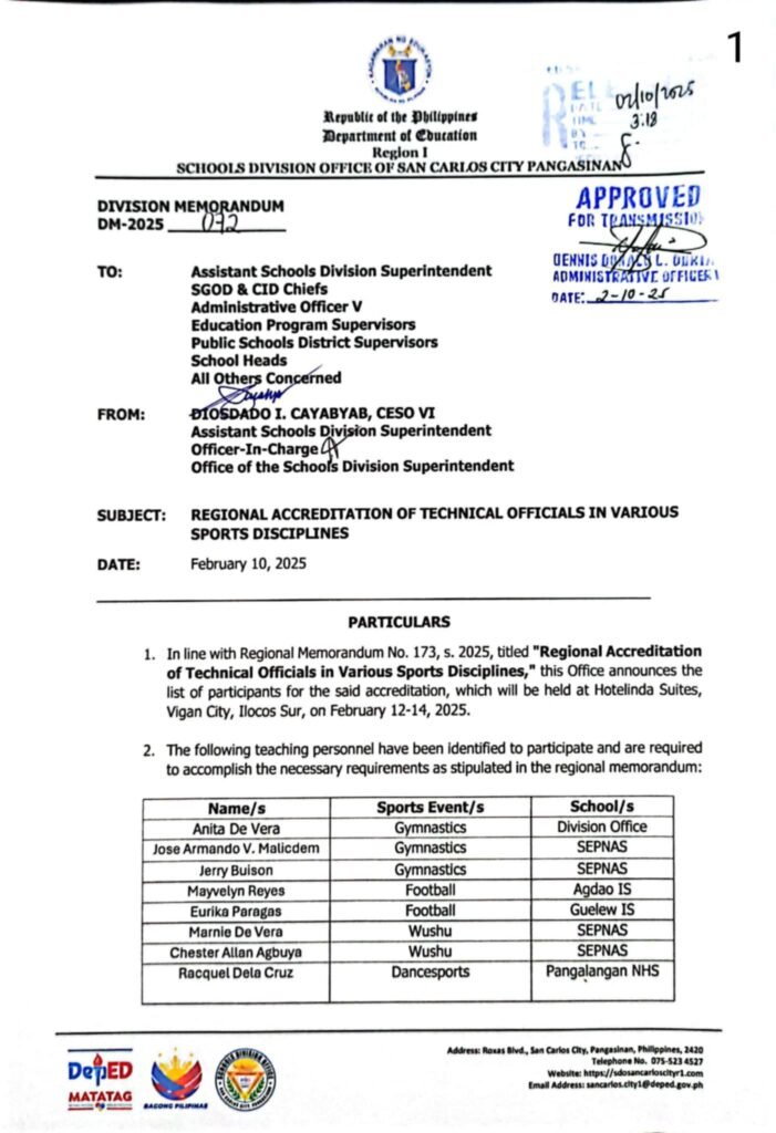 Division Memorandum No. 072 s, 2025 – REGIONAL ACCREDITATION OF TECHNICAL OFFICIALS IN VARIOUS SPORTS DISCIPLINES