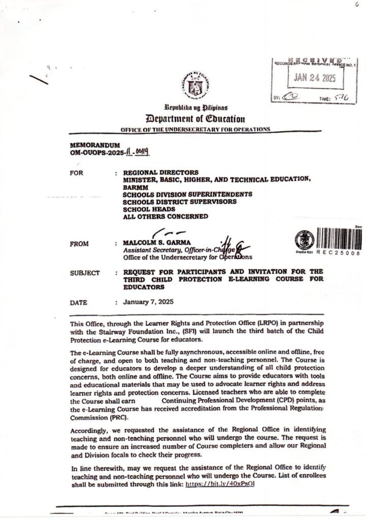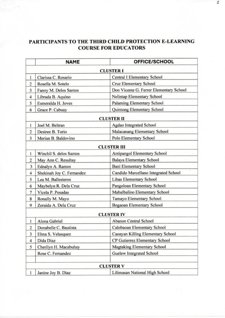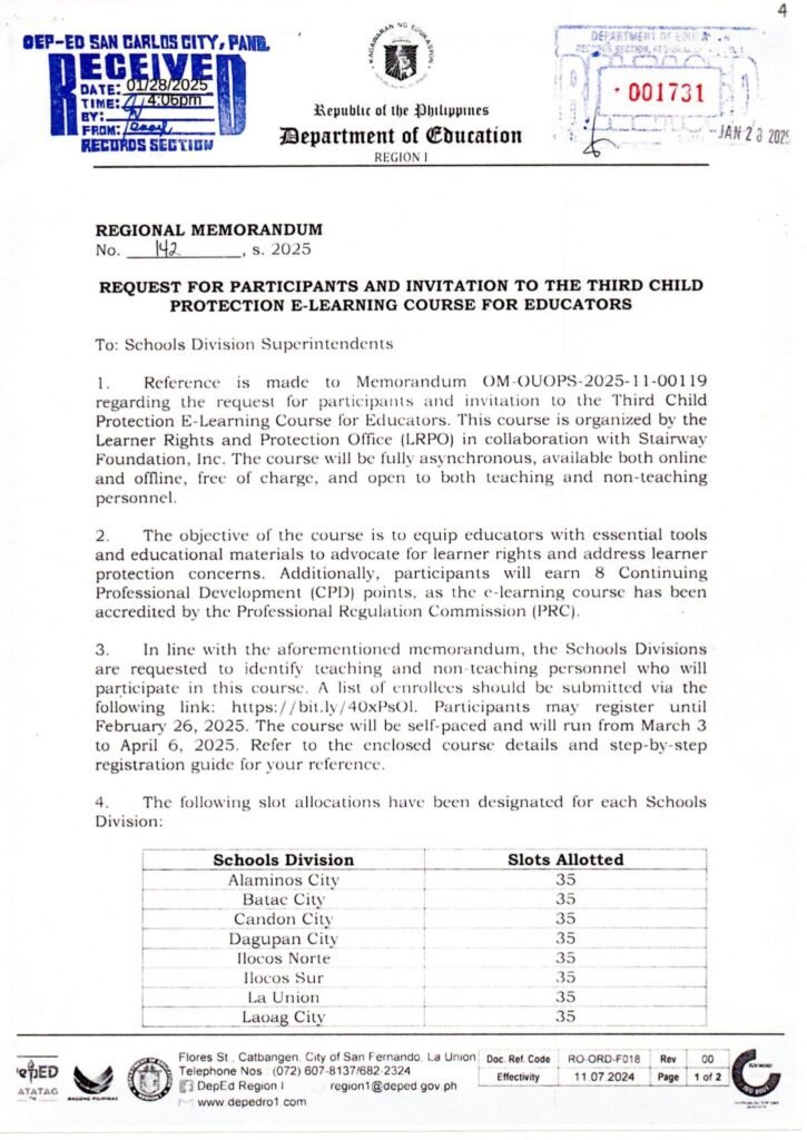 Division Memorandum No. 085 s, 2025 – PARTICIPANTS TO THE THIRD CHILD PROTECTION E-LEARNING COURSE FOR EDUCATORS