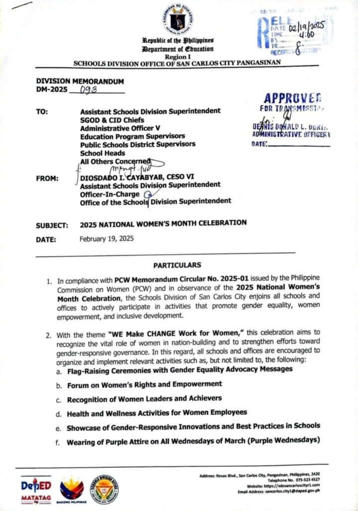 Division Memorandum No. 093 s, 2025 – 2025 National Women’s Month Celebration