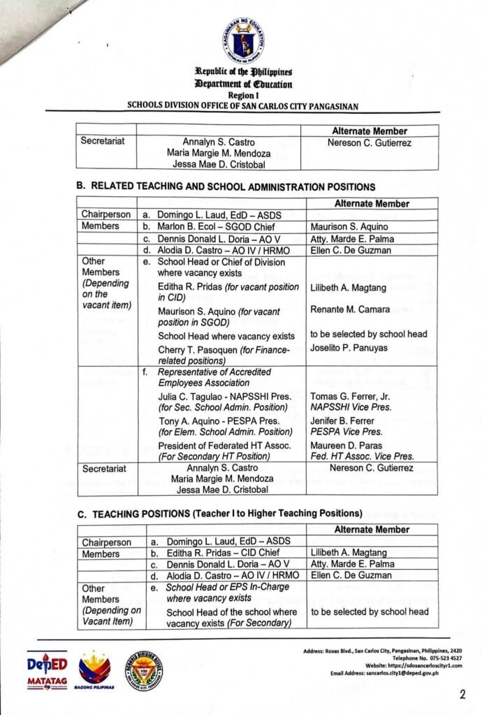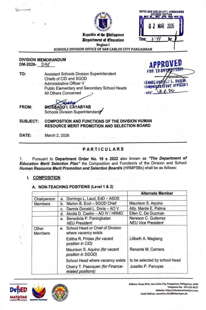 Division Memorandum No. 098 s, 2026 – COMPOSITION AND FUNCTIONS OF THE DIVISION HUMAN RESOURCE MERIT PROMOTION AND SELECTION BOARD