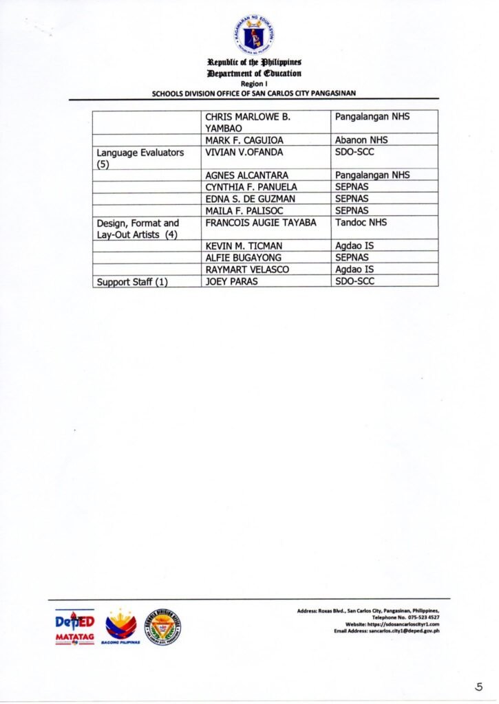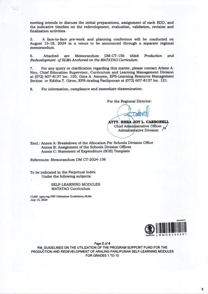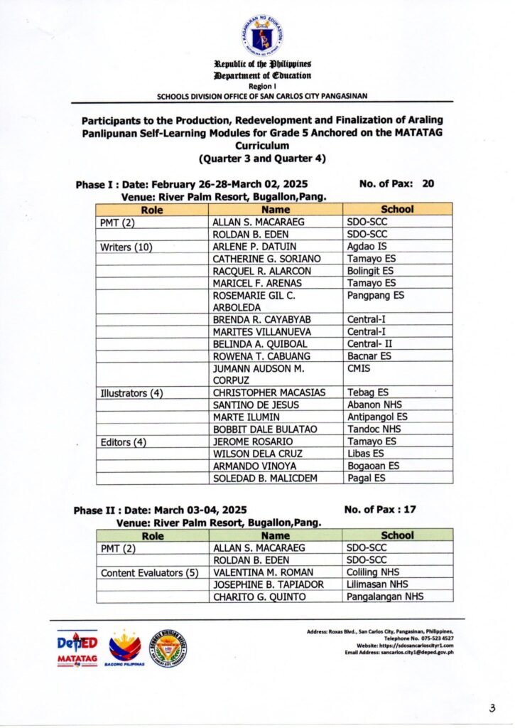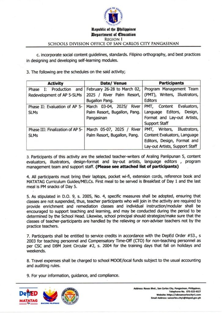Division Memorandum No. 103 s, 2025 – DIVISION CONDUCT ON THE PRODUCTION, REDEVELOPMENT EVALUATION AND FINALIZATION OF ARALING PANLIPUNAN SELF-LEARNING MODULES (AP-SLMs) FOR GRADE 5 ANCHORED ON MATATAG CURRICULUM (QUARTERS 3 and 4)