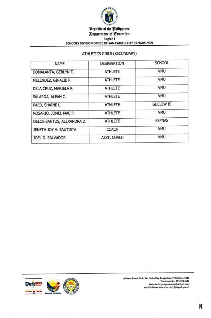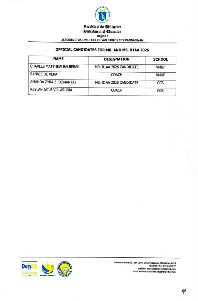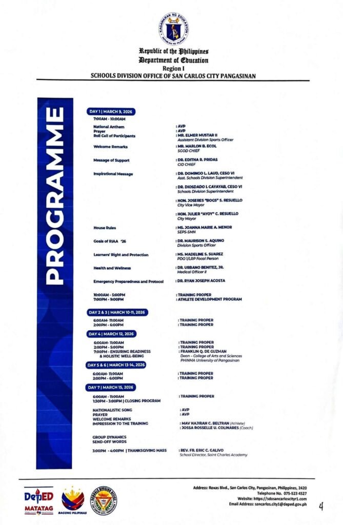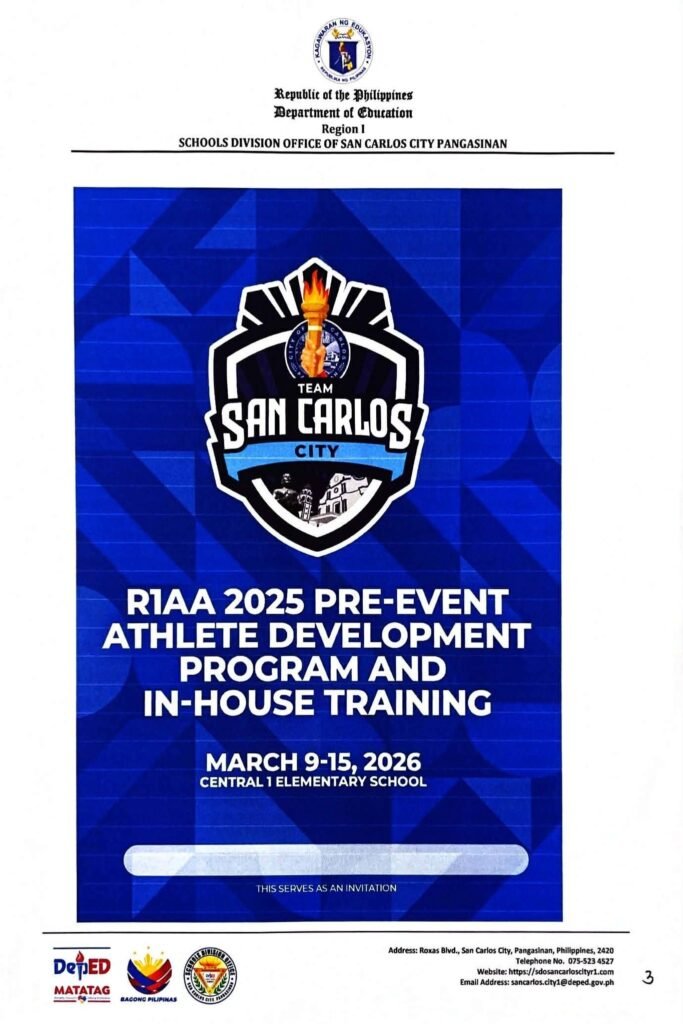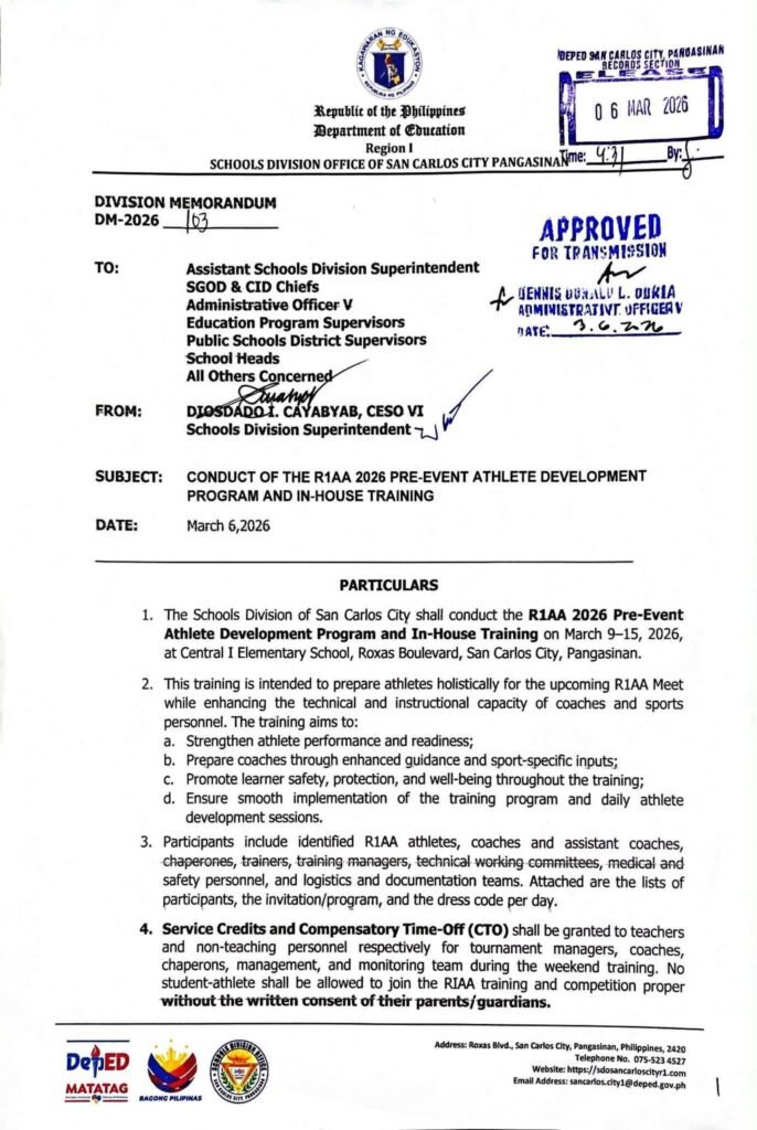 Division Memorandum No. 103 s, 2026 – CONDUCT OF THE R1AA 2025 PRE-EVENT ATHLETE DEVELOPMENT PROGRAM AND IN-HOUSE TRAINING