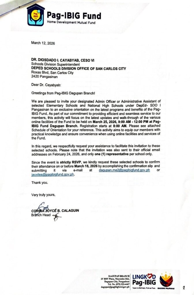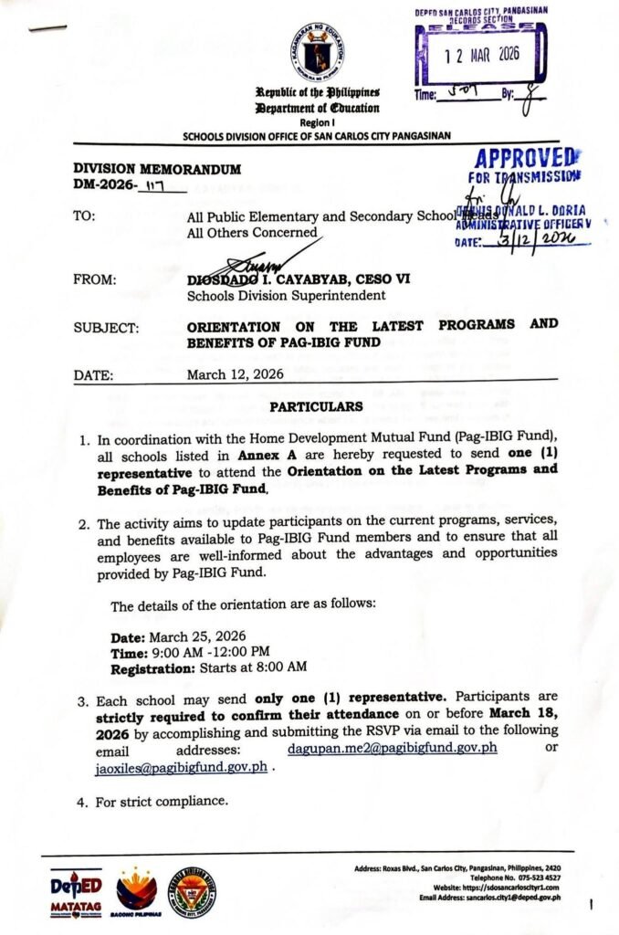 • Division Memorandum No. 117 s, 2026 –ORIENTATION ON THE LATEST PROGRAMS AND BENEFITS OF PAG-IBIG FUND
