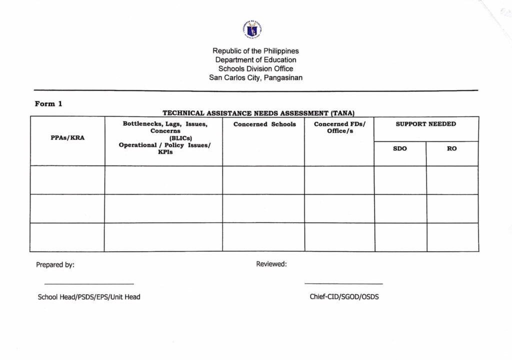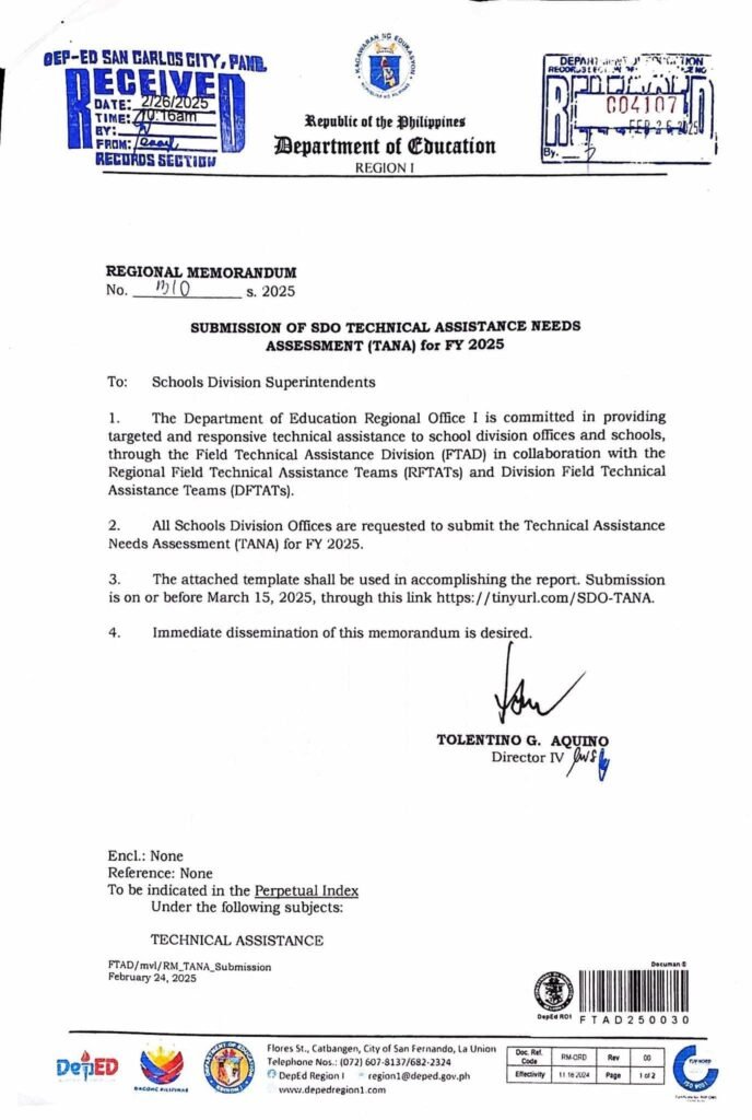Division Memorandum No. 124 s, 2025 – SUBMISSION OF TECHNICAL ASISSTANCE NEEDS ASSESSMENT (TANA) FOR SY 2025