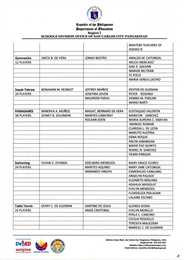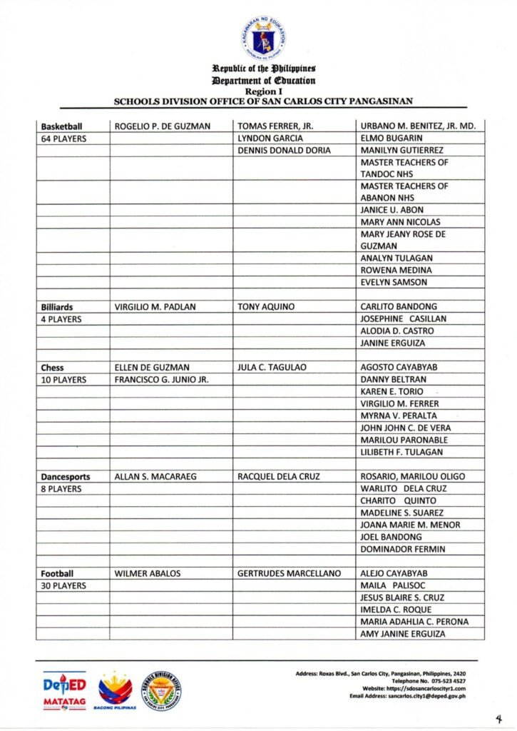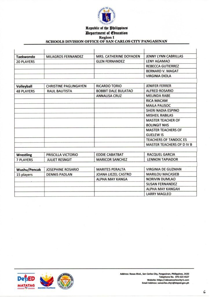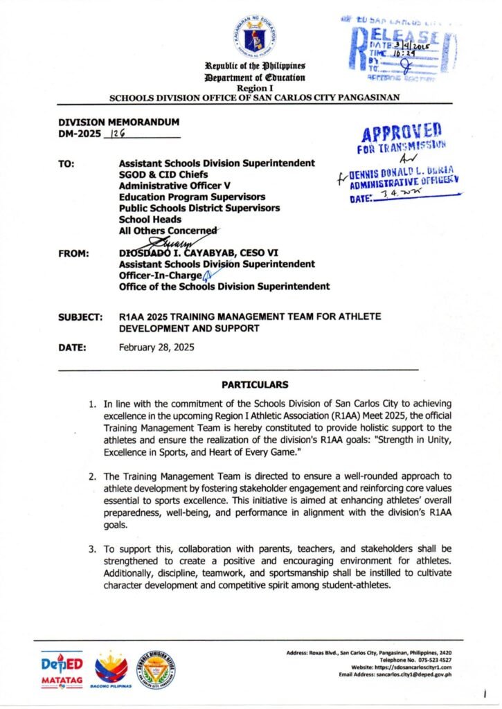 Division Memorandum No. 126 s, 2025 – R1AA 2025 TRAINING MANAGEMENT TEAM FOR ATHLETE DEVELOPMENT AND SUPPORT