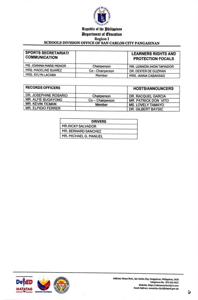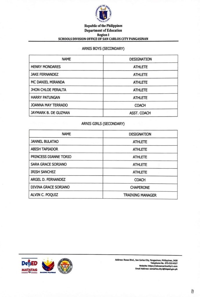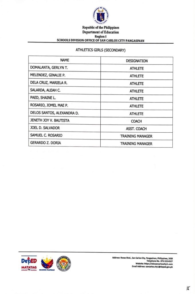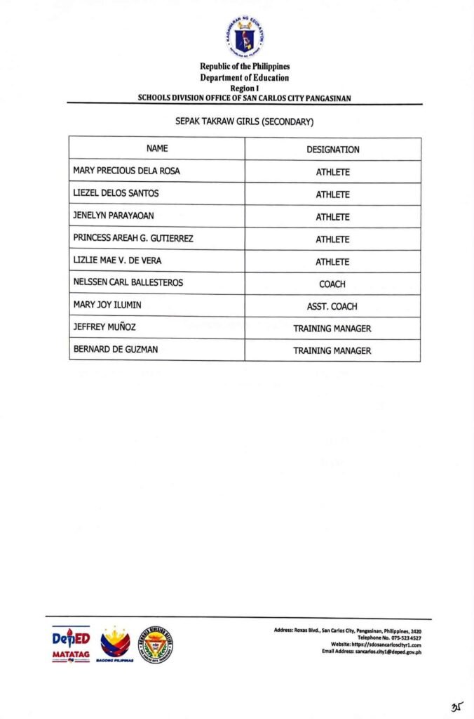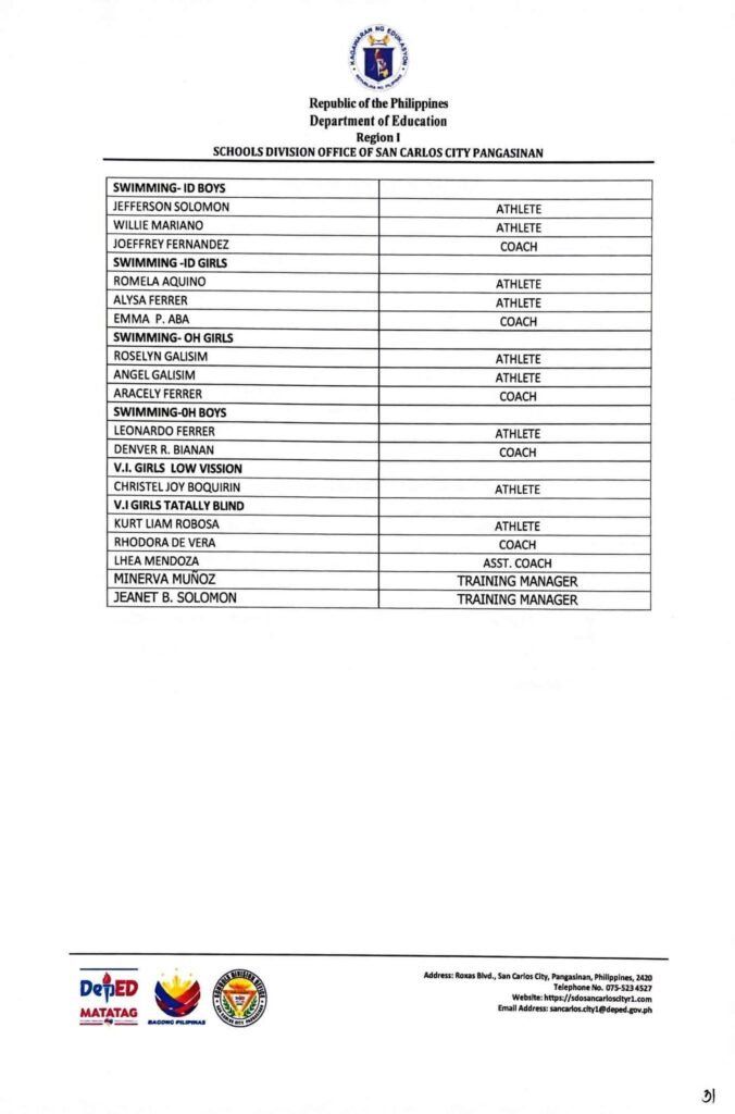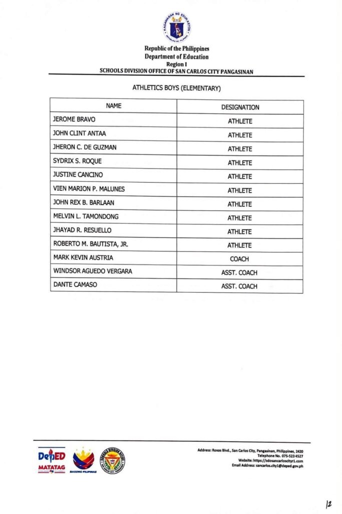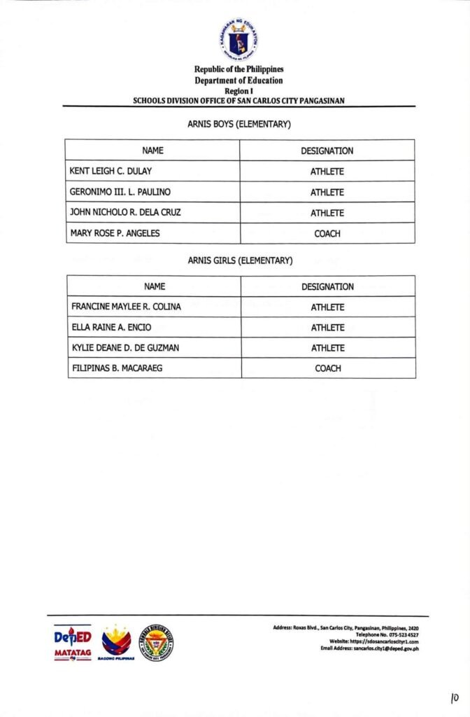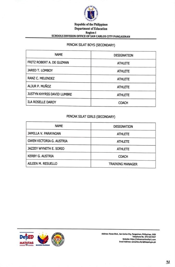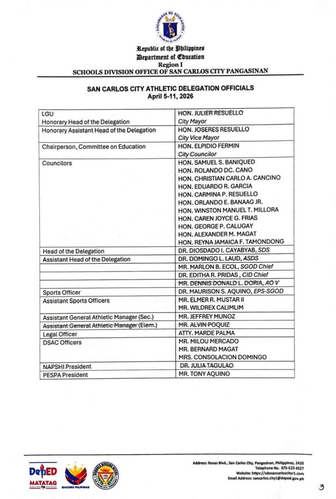 • Division Memorandum No. 130 s, 2026 – DISTRIBUTION OF UNIFORM OF SDO SCC DELEGATION FOR THE REGION I ATHLETIC ASSOCIATION MEET 2026