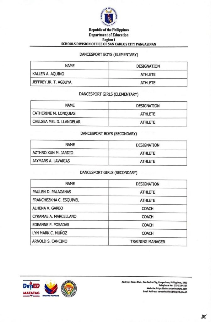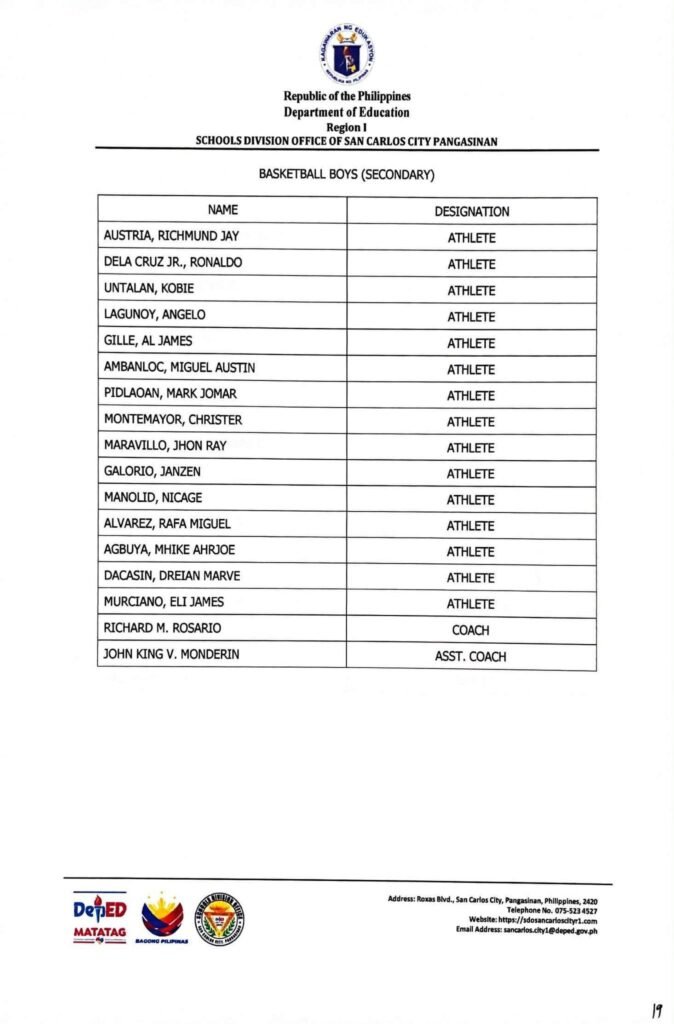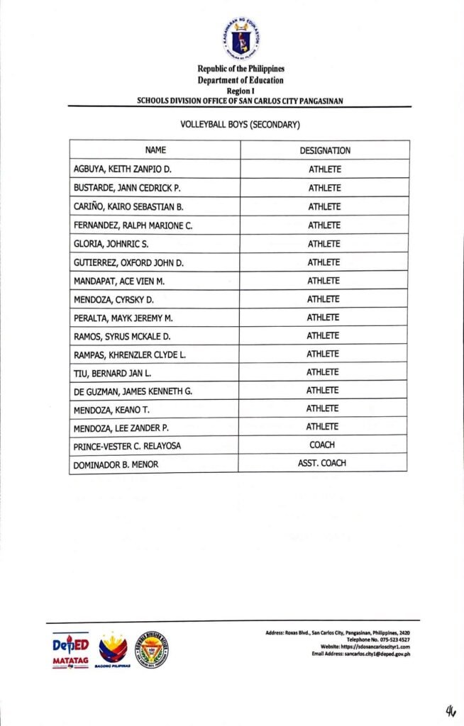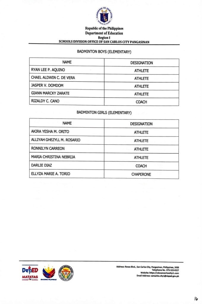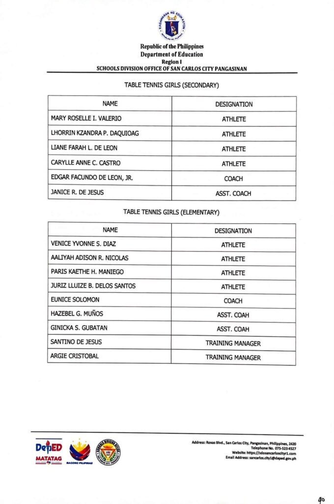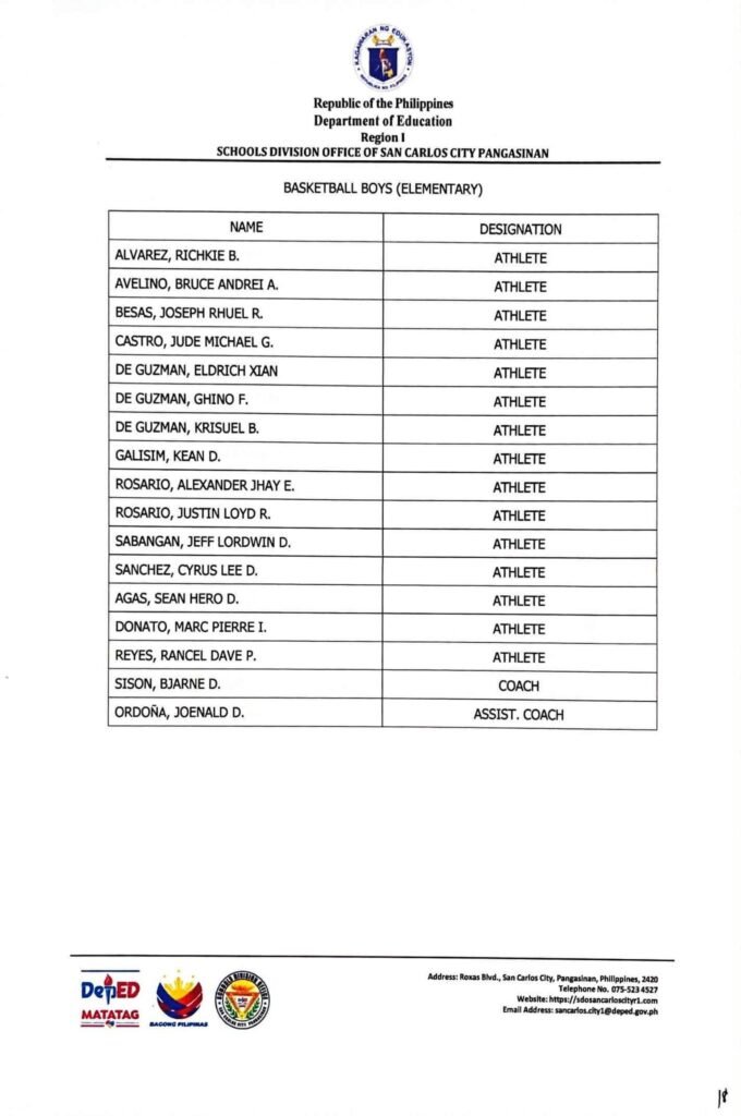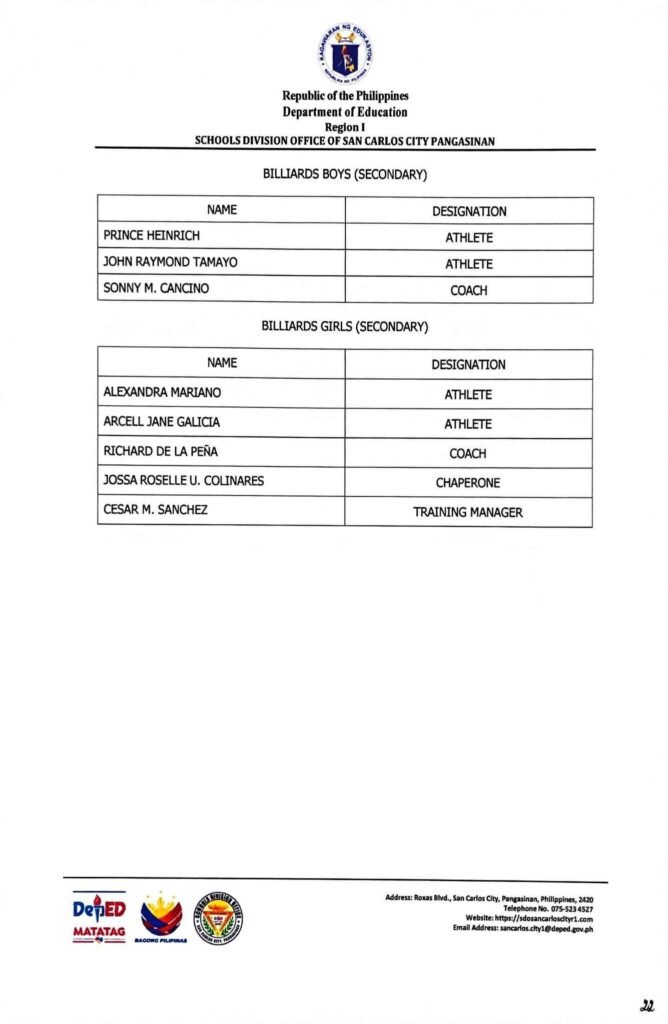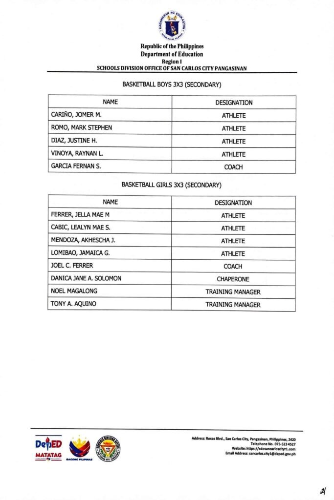 • Division Memorandum No. 130 s, 2026 – DISTRIBUTION OF UNIFORM OF SDO SCC DELEGATION FOR THE REGION I ATHLETIC ASSOCIATION MEET 2026