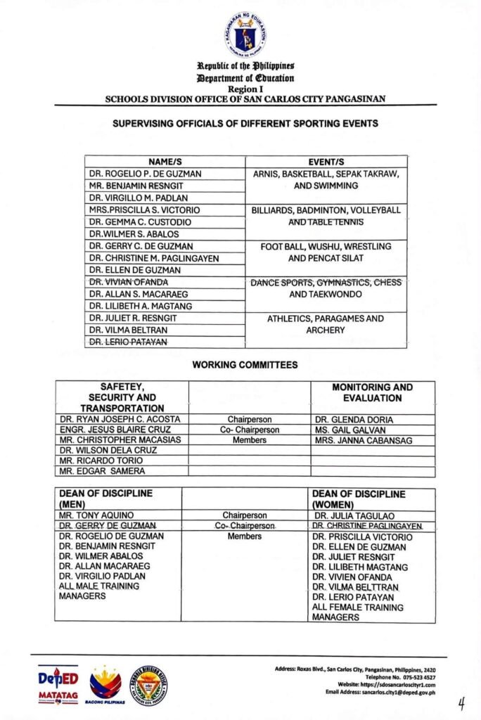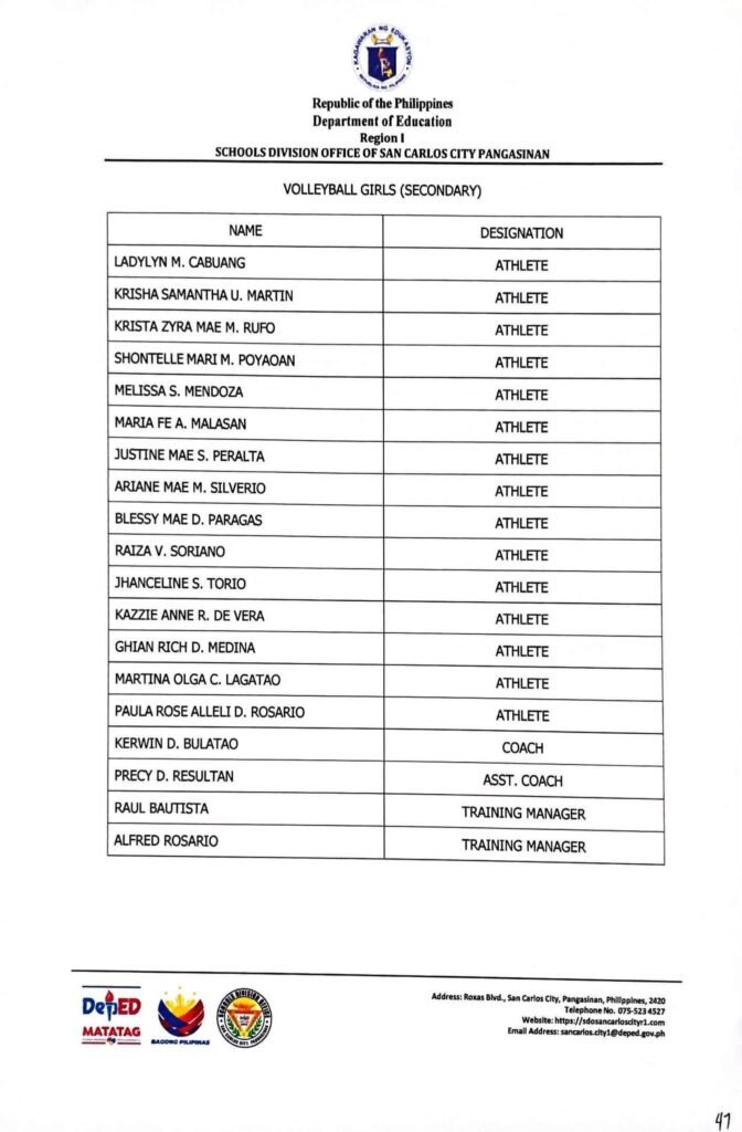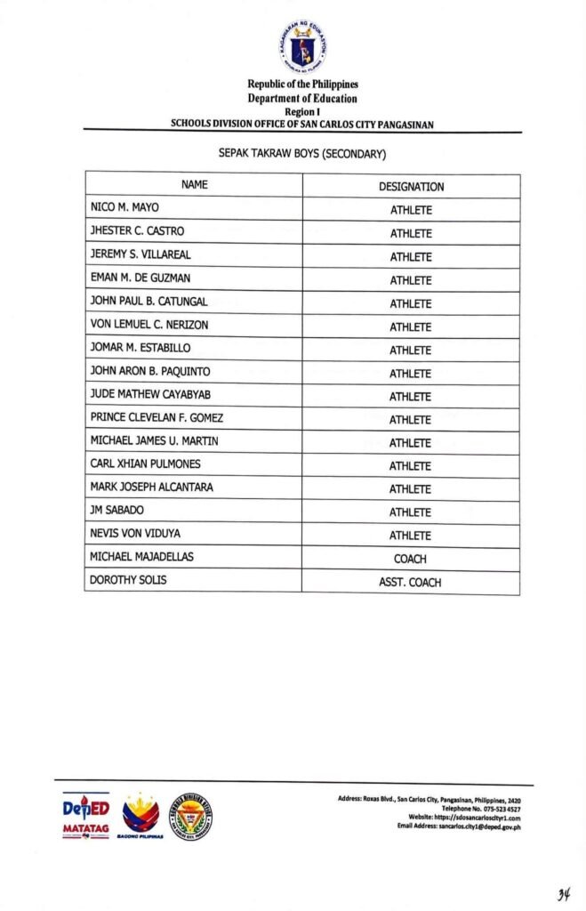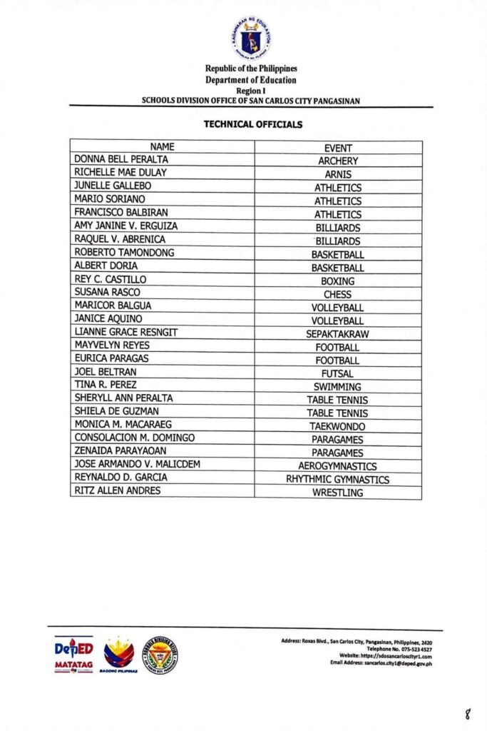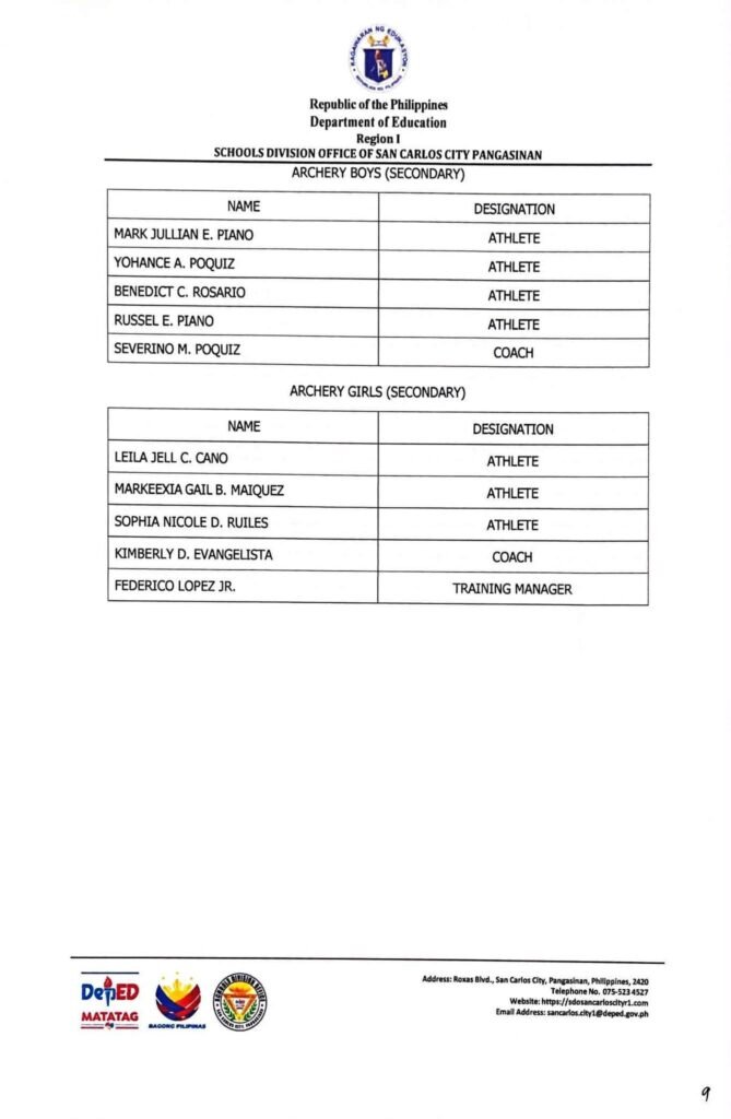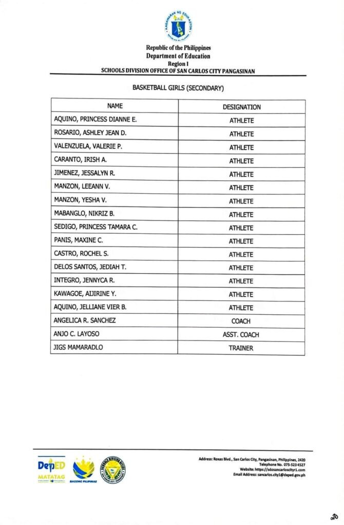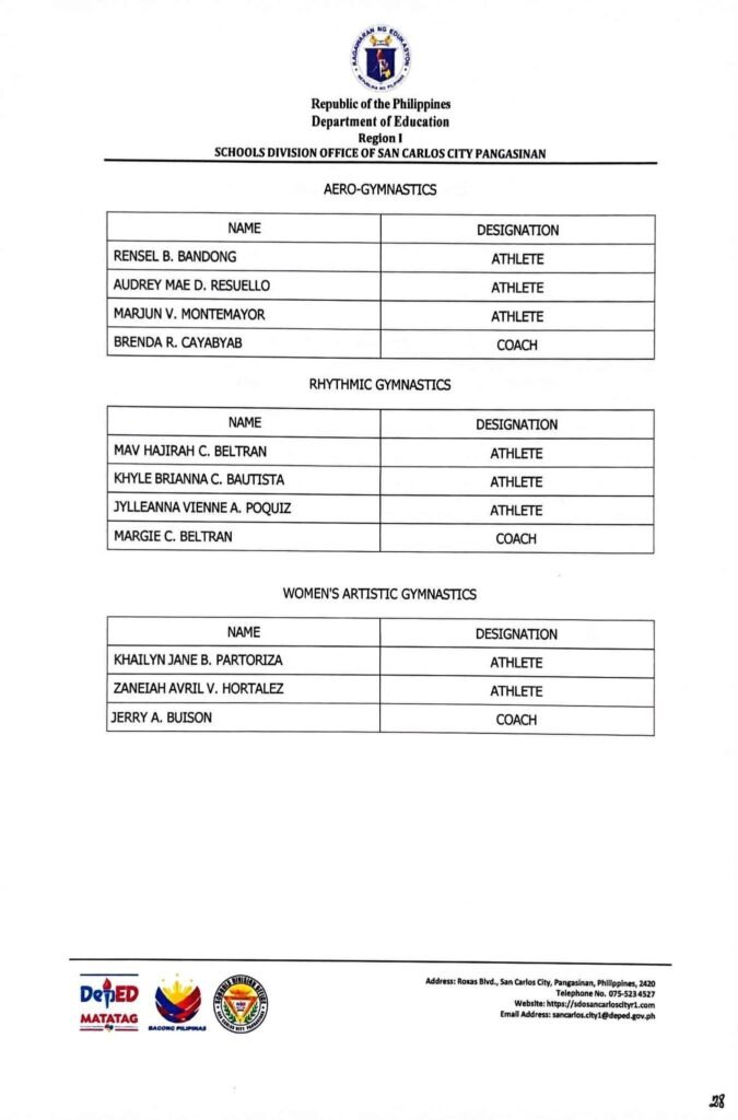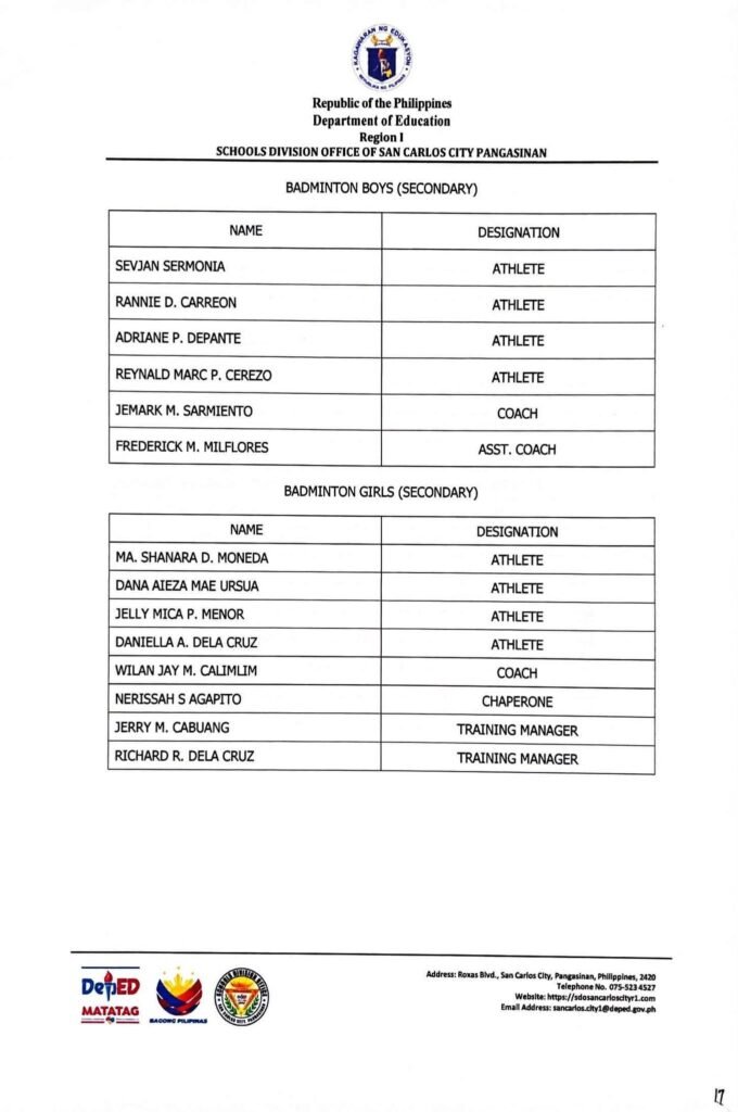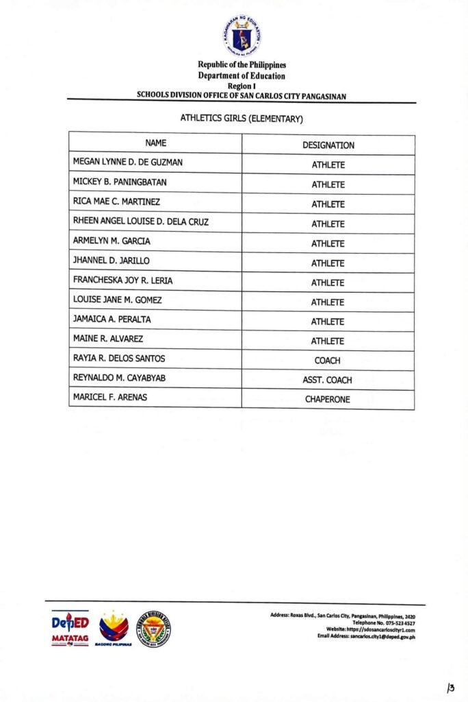 • Division Memorandum No. 130 s, 2026 – DISTRIBUTION OF UNIFORM OF SDO SCC DELEGATION FOR THE REGION I ATHLETIC ASSOCIATION MEET 2026