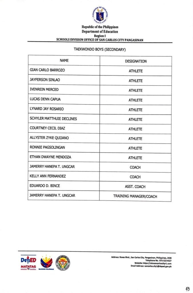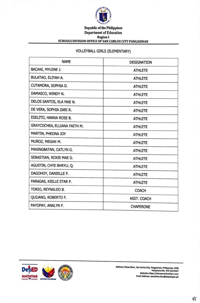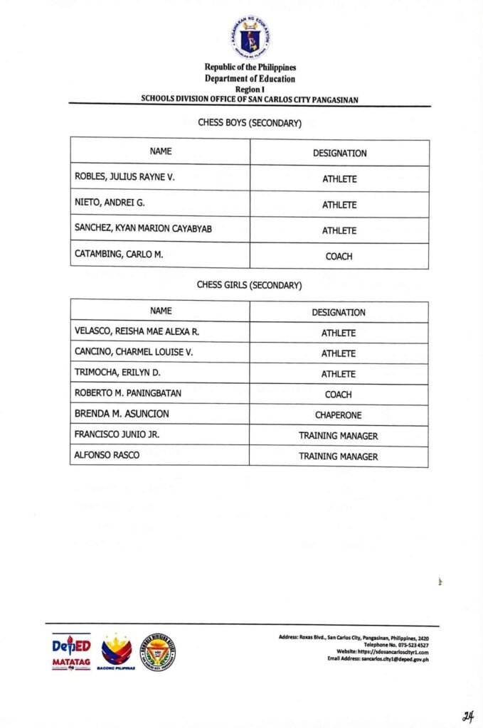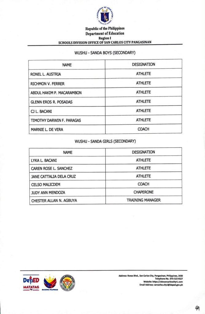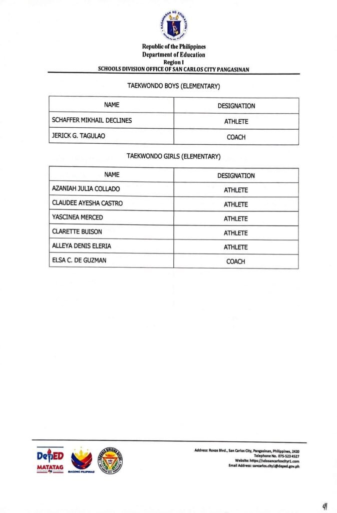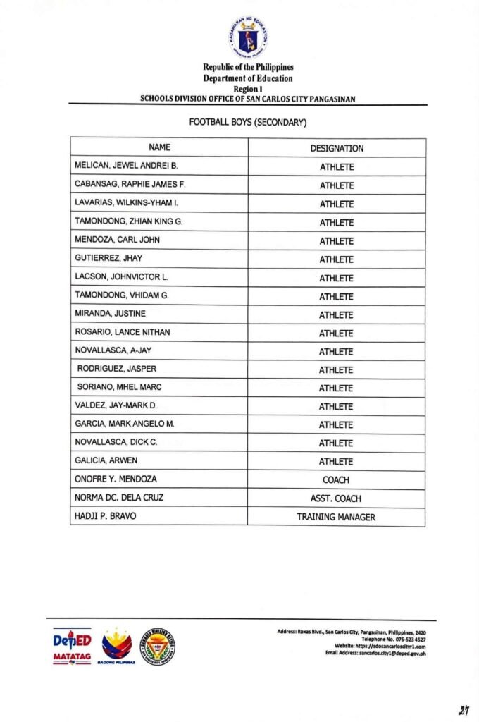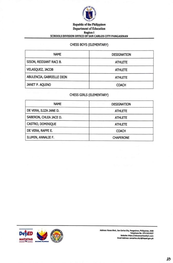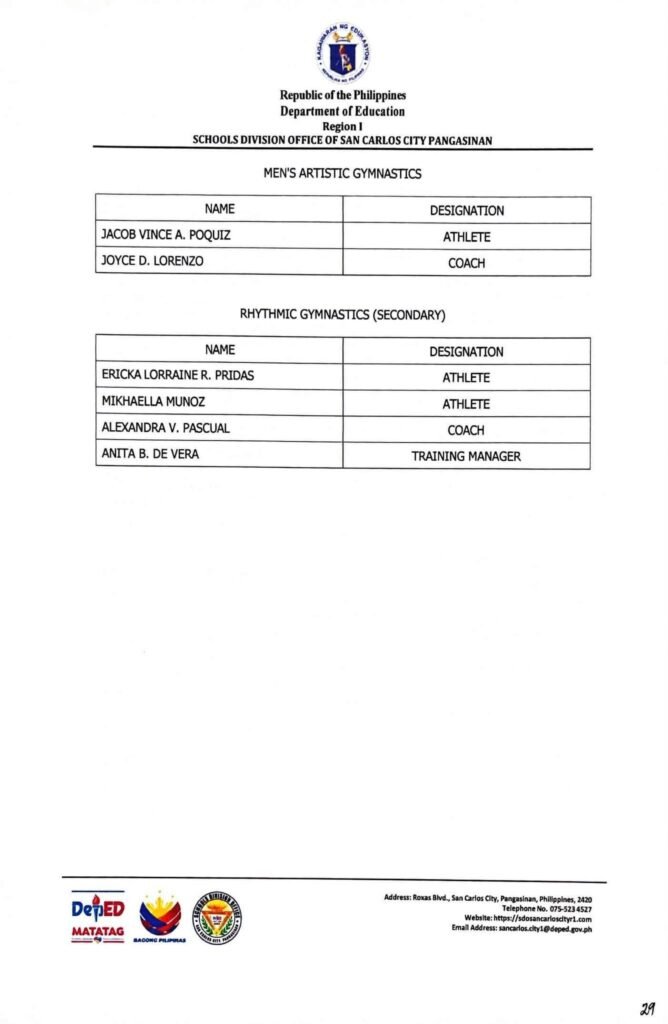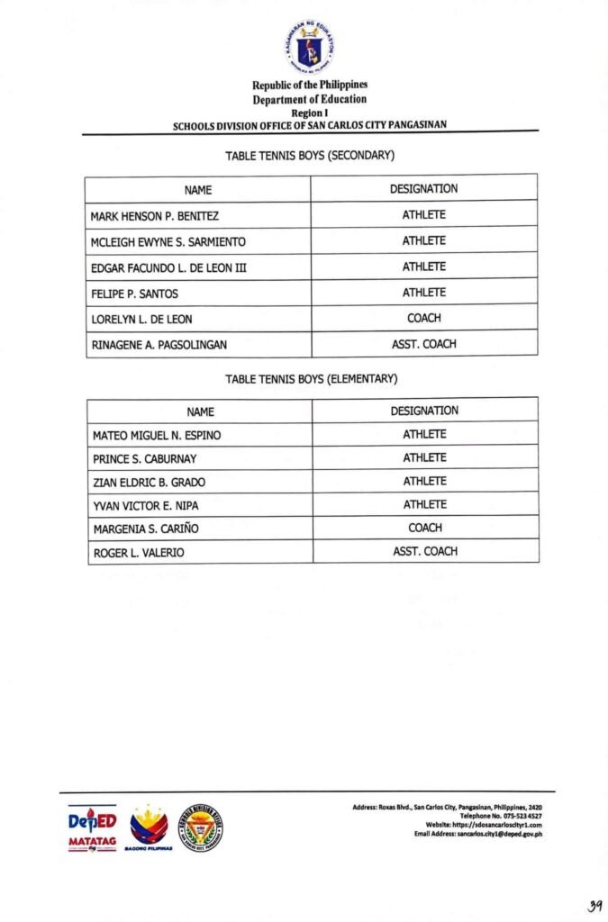 • Division Memorandum No. 130 s, 2026 – DISTRIBUTION OF UNIFORM OF SDO SCC DELEGATION FOR THE REGION I ATHLETIC ASSOCIATION MEET 2026