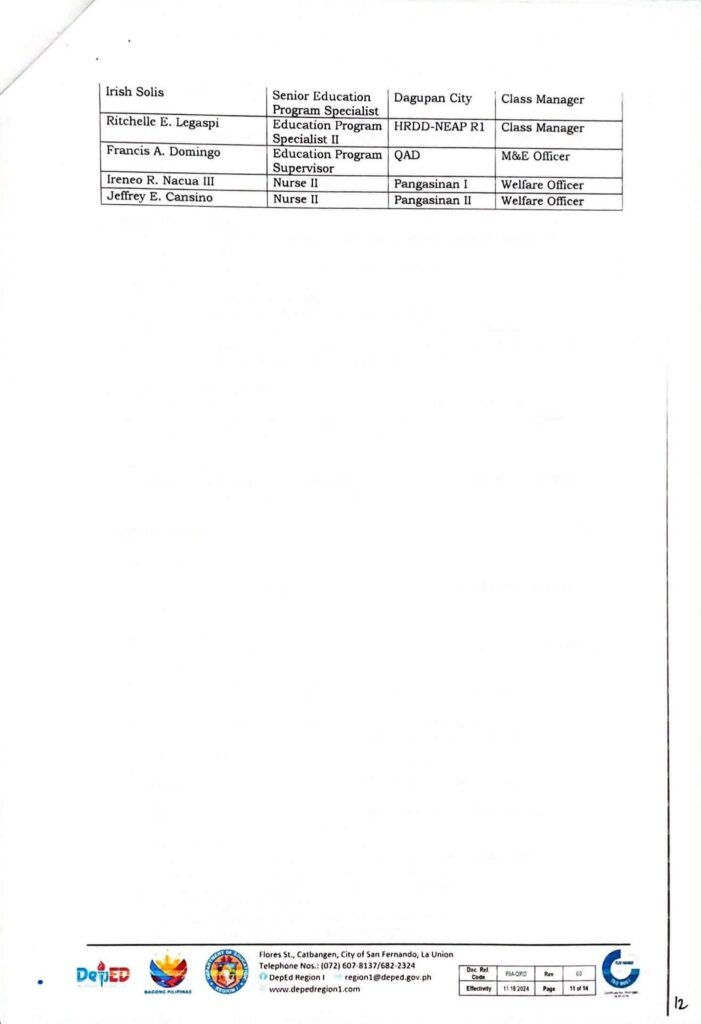 • 2026-04-16-001 NOTICE TO PROCEED AND PURCHASE ORDER OF THE PROCUREMENT OF MEALS AND SNACKS FOR THE 2026 QUARTERLY CONDUCT OF DIVISION MANAGEMENT COMMITTEE MEETING (MANCOM)