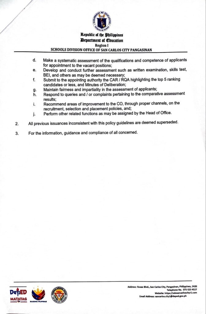 • Division Memorandum No. 071 s, 2026 – ORIENTATION ON THE RECRUITMENT AND HIRING GUIDELINES FOR TEACHER I APPLICANTS FOR THE SCHOOL YEAR 2026-2027