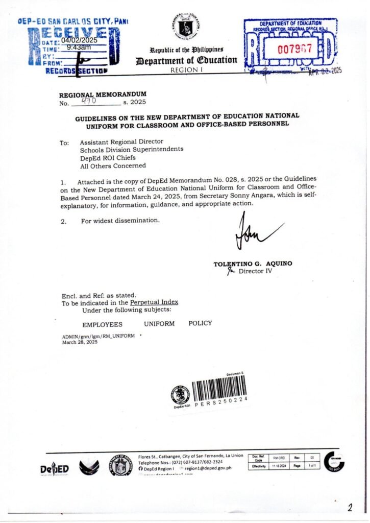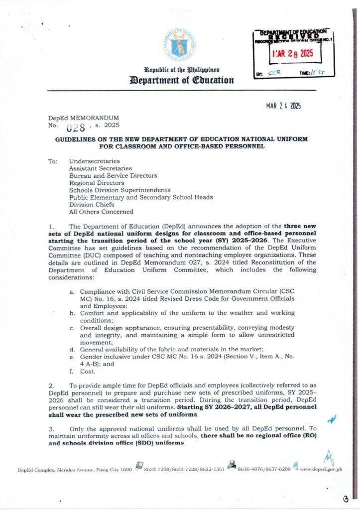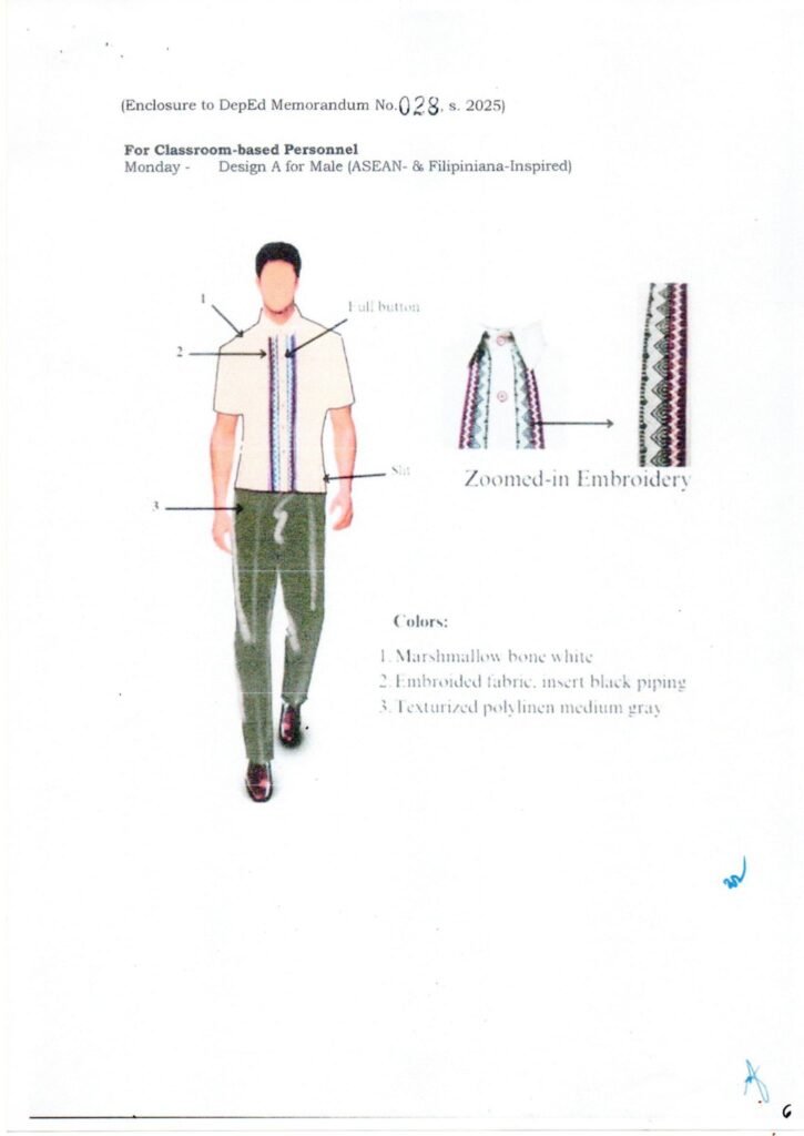 Division Memorandum No. 175 s, 2025 – GUIDELINES ON THE NEW DEPARTMENT OF EDUCATION NATIONAL UNIFORM FOR CLASSROOM AND OFFICE BASED PERSONNEL