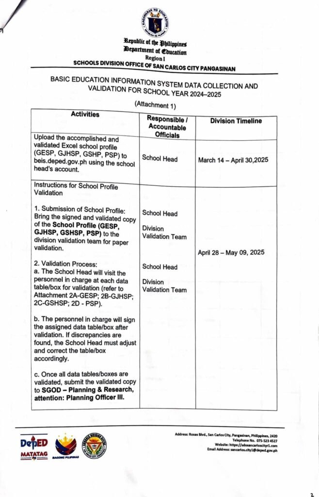 Division Memorandum No. 181 s, 2025 – BASIC EDUCATION INFORMATION SYSTEM DATA COLLECTION AND VALIDATION FOR SCHOOL YEAR 2024-2025