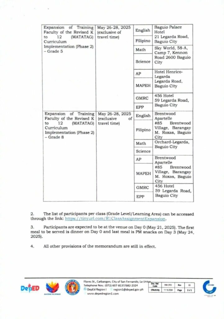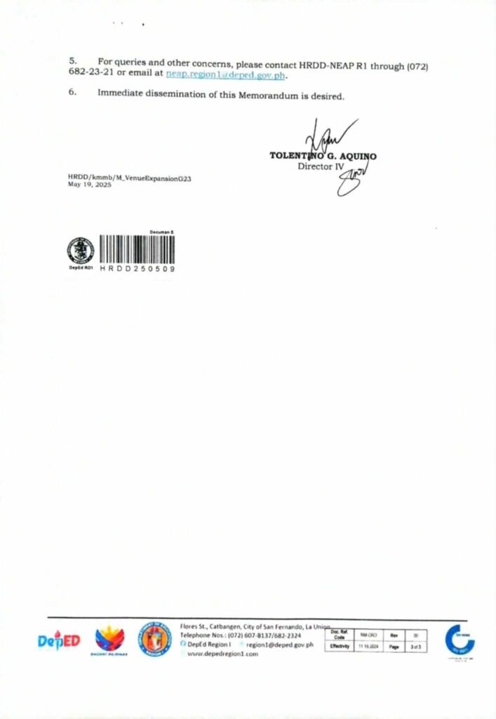• Division Memorandum No. 084 s, 2025 – REGION 1 ATHLETIC ASSOCIATION MEET 2025