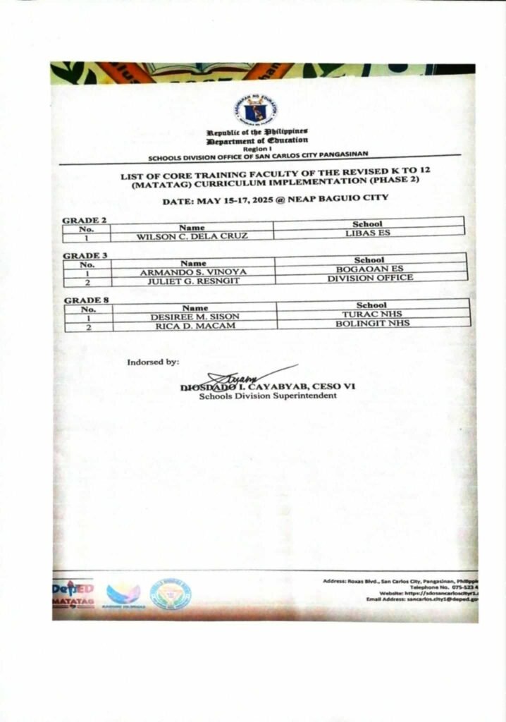 • Division Memorandum No. 063 s, 2026 – REQUEST TO PARTICIPATE IN THE SENIOR HIGH SCHOOL (SHS) CURRICULUM SURVEY FOR THE EVALUATION OF THE STRENGTHENED SENIOR HIGH SCHOOL (SSHS) CURRICULUM
