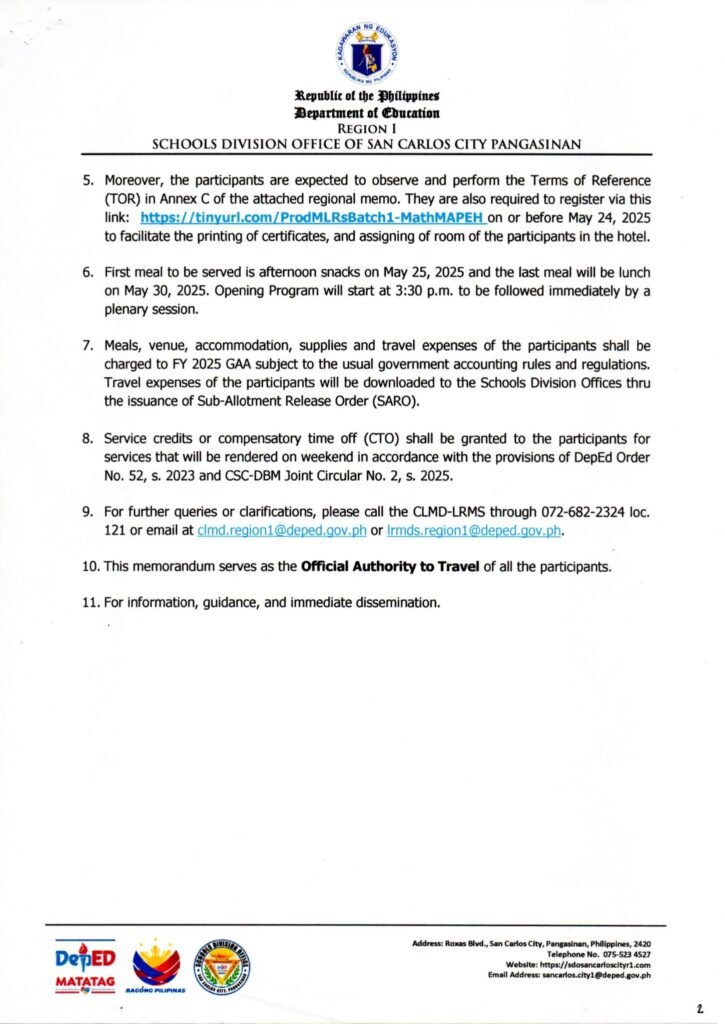 • Division Memorandum No. 084 s, 2025 – REGION 1 ATHLETIC ASSOCIATION MEET 2025