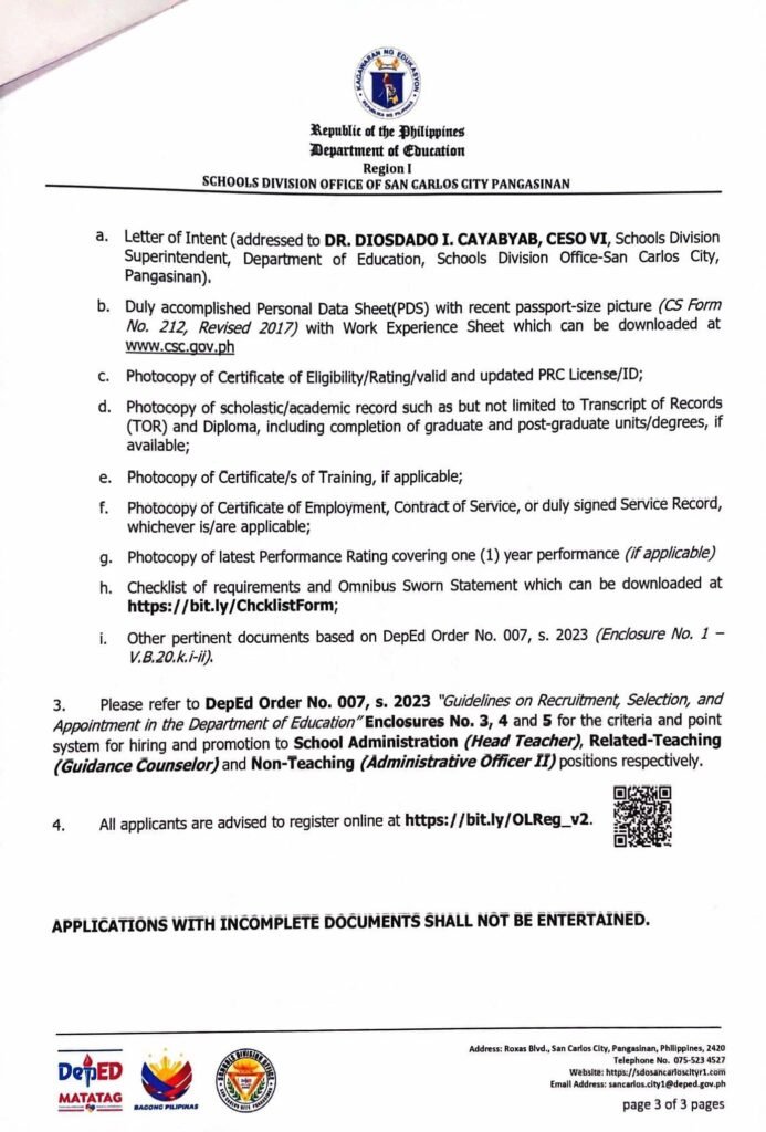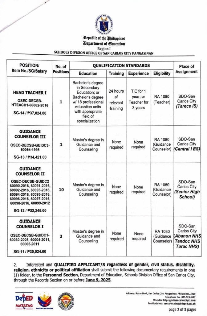 Division Memorandum No. 224 s, 2025 – ππŽπ“πˆπ‚π„ πŽπ… 𝐕𝐀𝐂𝐀𝐍𝐓 ππŽπ’πˆπ“πˆπŽππ’ 𝐈𝐍 π’πƒπŽ-𝐒𝐀𝐍 π‚π€π‘π‹πŽπ’ π‚πˆπ“π˜