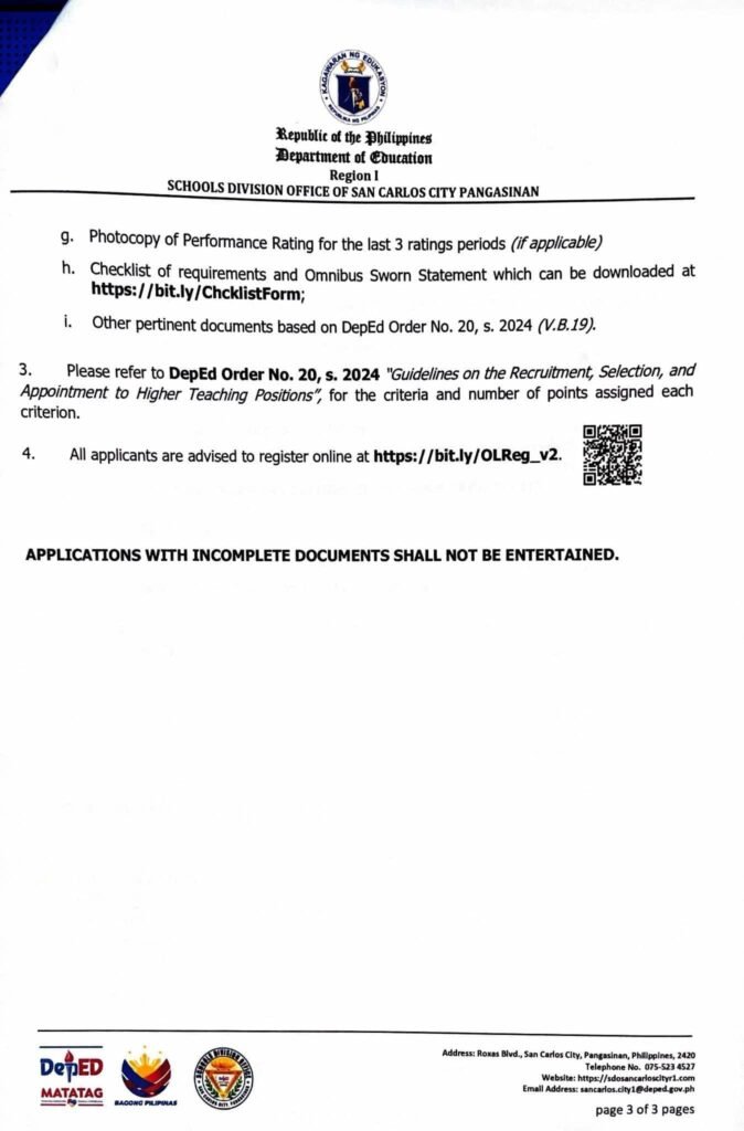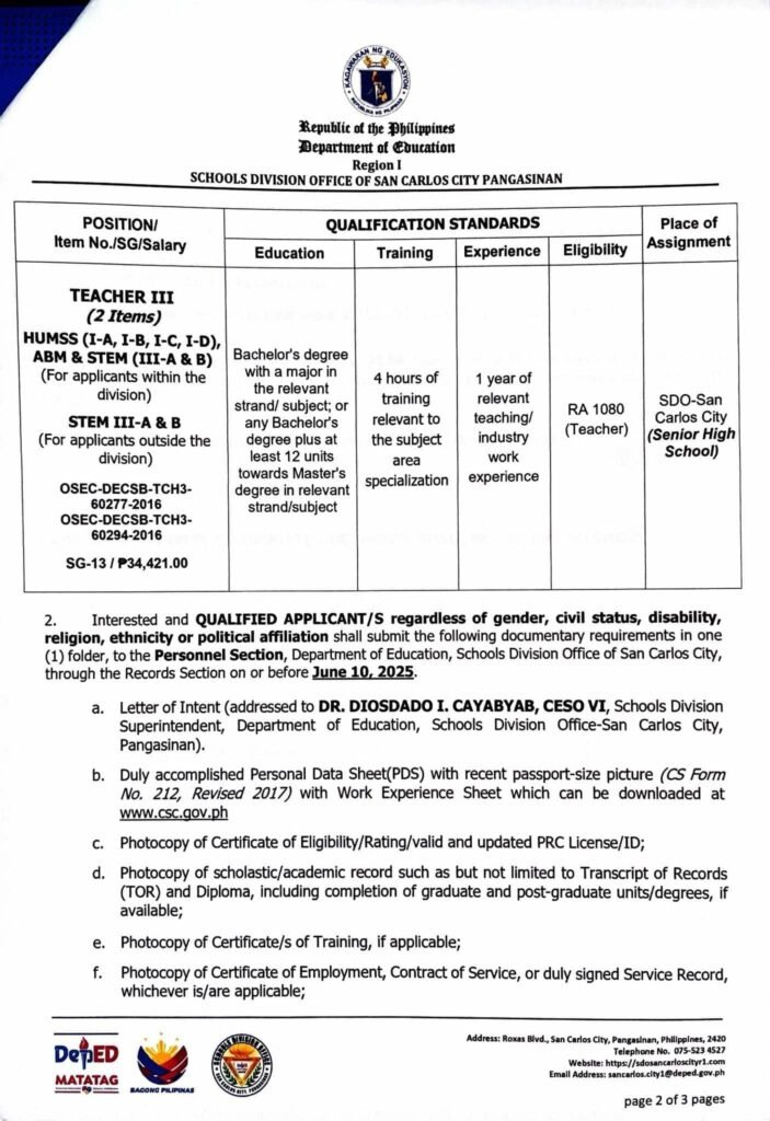 Division Memorandum No. 227 s, 2025 – NOTICE OF VACANT POSITIONS IN SDO-SAN CARLOS CITY