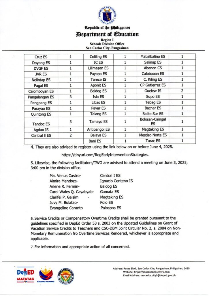 Division Memorandum No. 229 s, 2025 – DIVISION TRAINING OF UNTRAINED GRADE I TEACHRS ON THE ADMINISTRATION OF MULTI-FACTORED ASSESSMENT TOOL (MFAT) AND EARLY INTERVENTION STRATEGIES