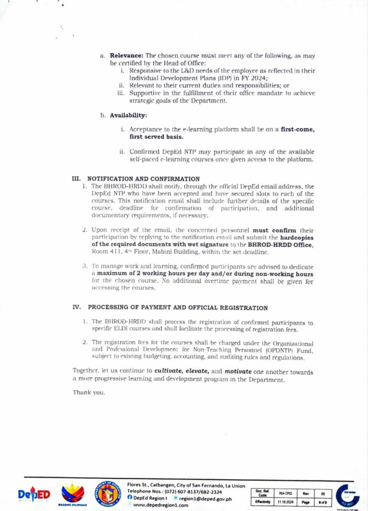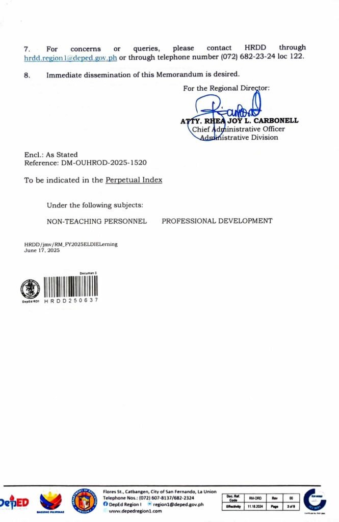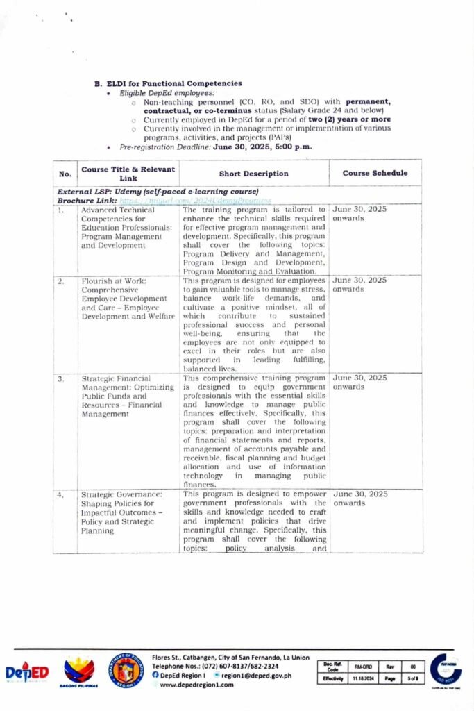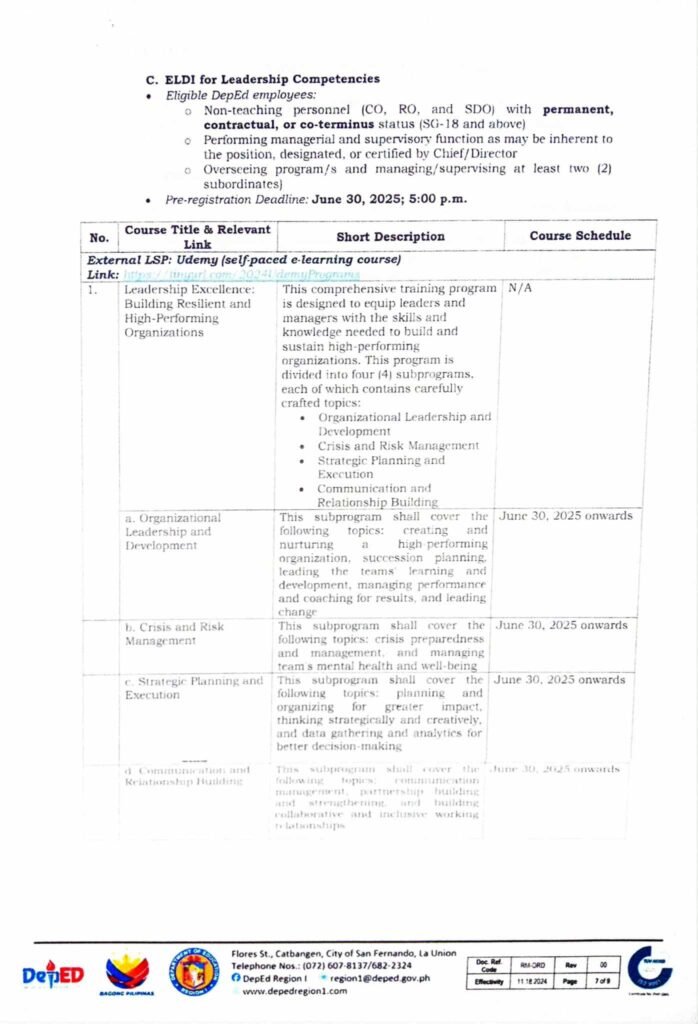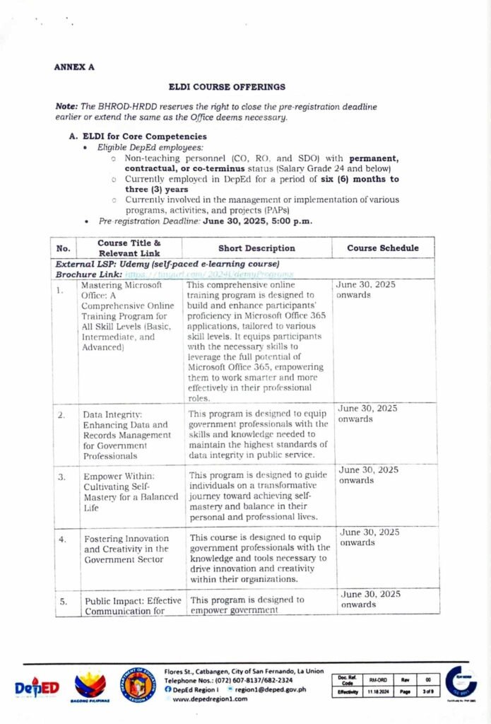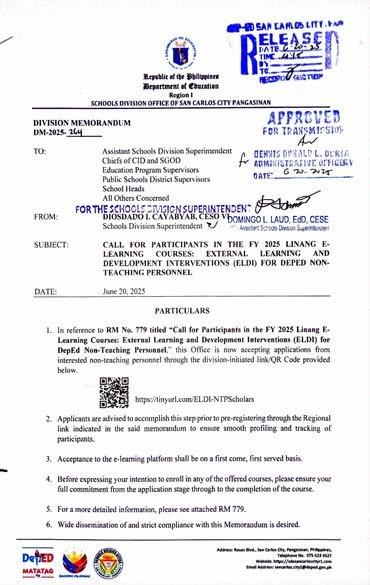 Division Memorandum No. 264 s, 2025 – Call for Participants in the FY 2025 Linang E-Learning Courses: External Learning and Development Interventions (ELDI) for DepEd Non-Teaching Personnel