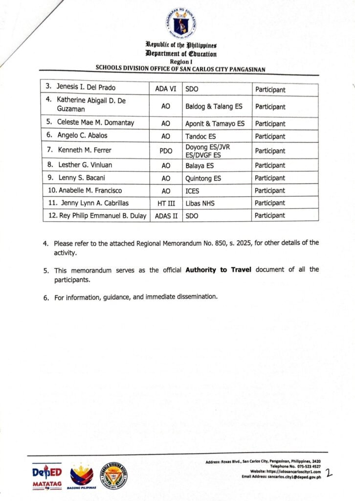 • Division Memorandum No. 084 s, 2025 – REGION 1 ATHLETIC ASSOCIATION MEET 2025