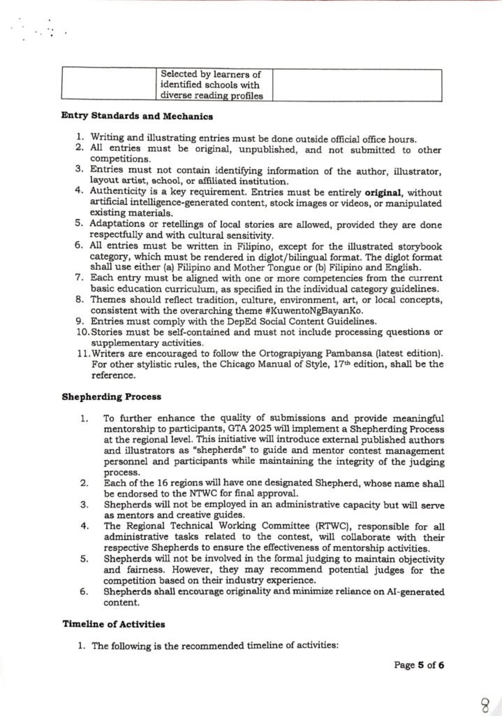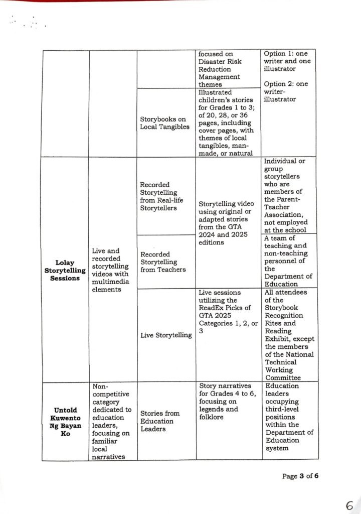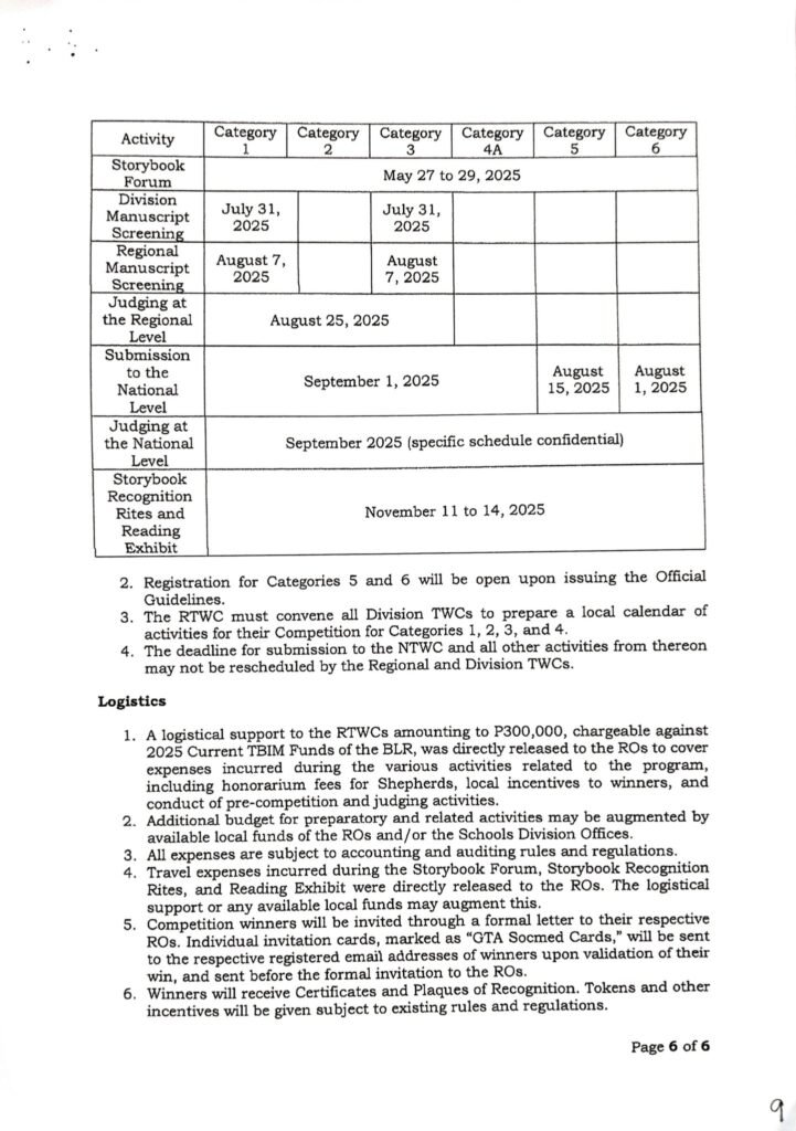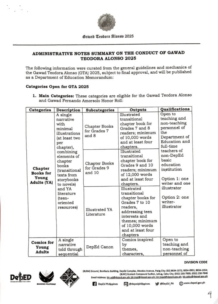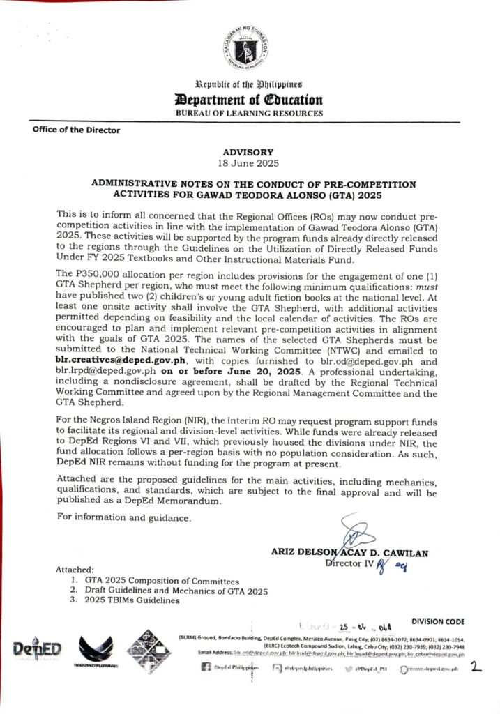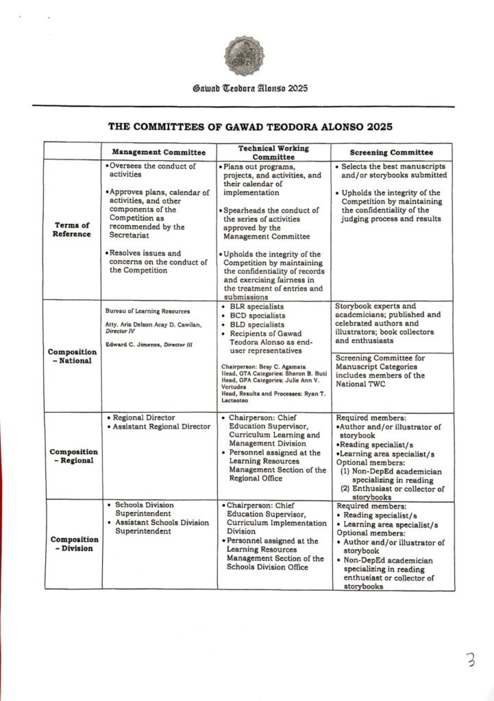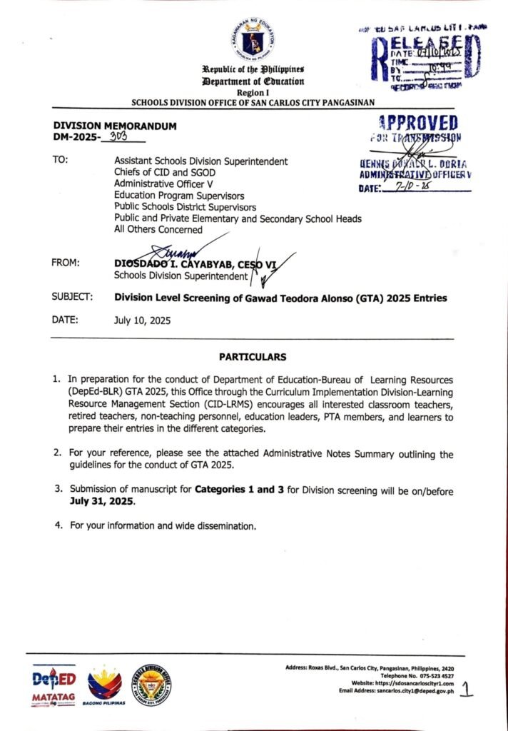 Division Memorandum No. 303 s, 2025 – Division Level Screening of Gawad Teodora Alonso (GTA) 2025 Entries