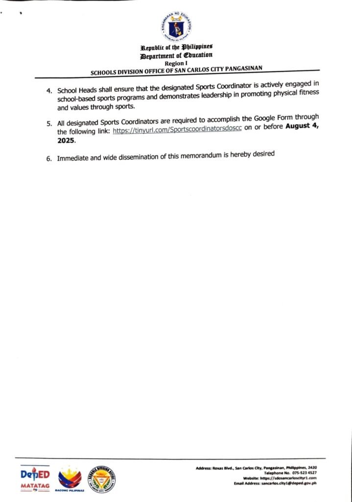 Division Memorandum No. 327 s, 2025 – SUBMISSION OF UPDATED SCHOOL SPORTS COORDINATOR DATA FOR STRENGTHENING SPORTS CLUBBING AND DEVELOPMENT