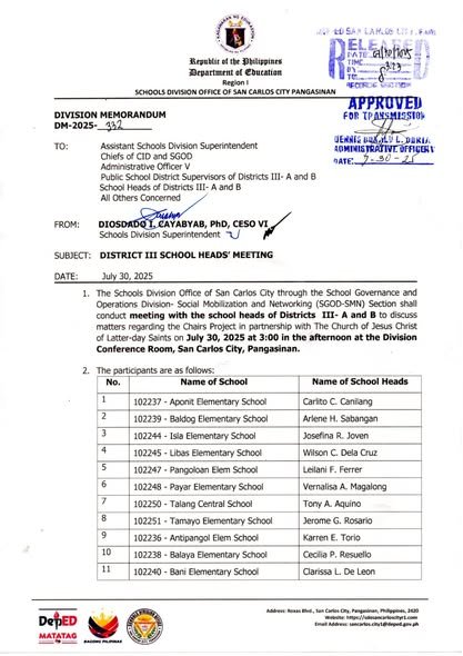 Division Memorandum No. 332 s, 2025 – DISTRICT III SCHOOL HEADS’ MEETING