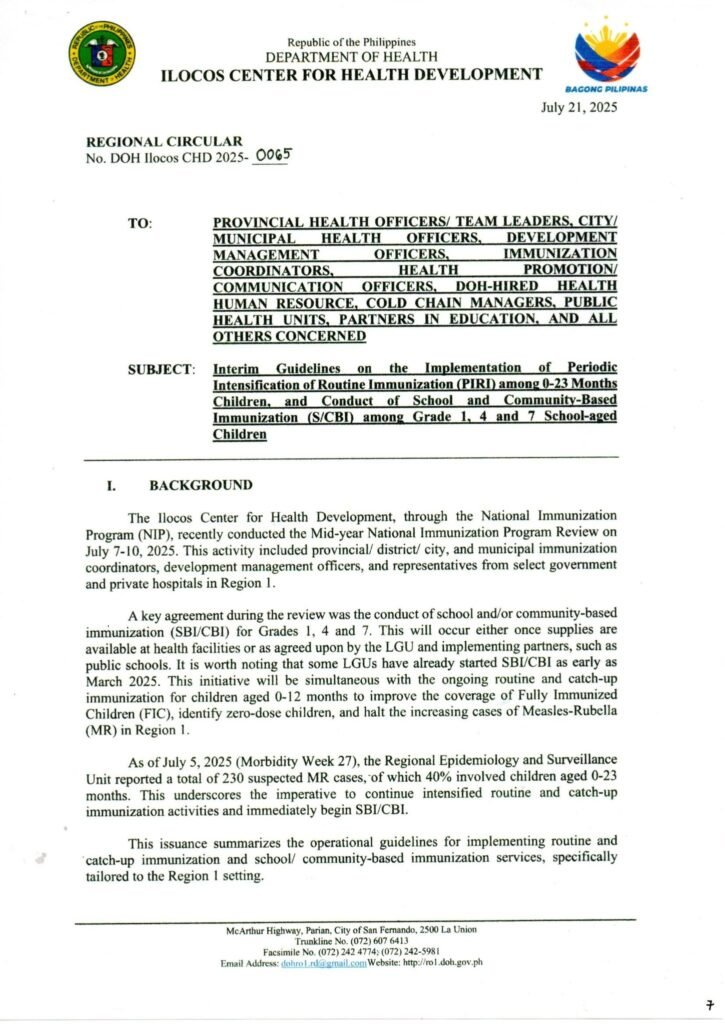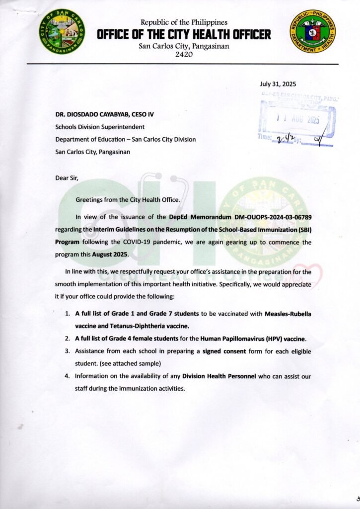 Division Memorandum No. 358 s, 2025 – RESUMPTION OF THE SCHOOL-BASED IMMUNIZATION PROGRAM AND SCHEDULE OF SBI KICK-OFF PROGRAM