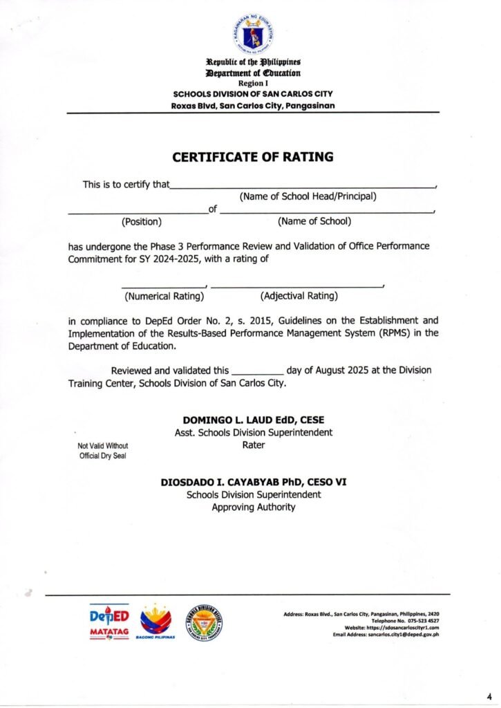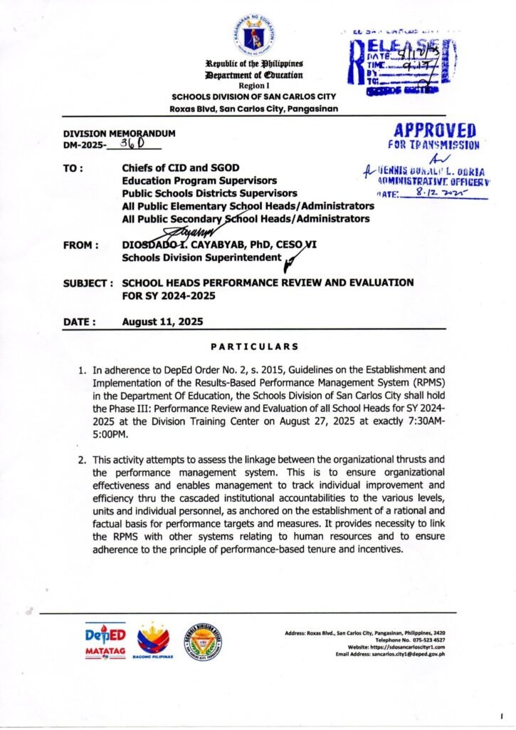 Division Memorandum No. 360 s, 2025 – SCHOOL HEADS PERFORMANCE REVIEW AND EVALUATION FOR SY 2024-2025