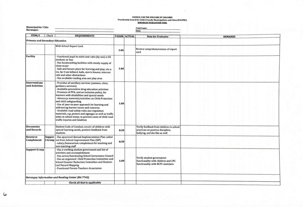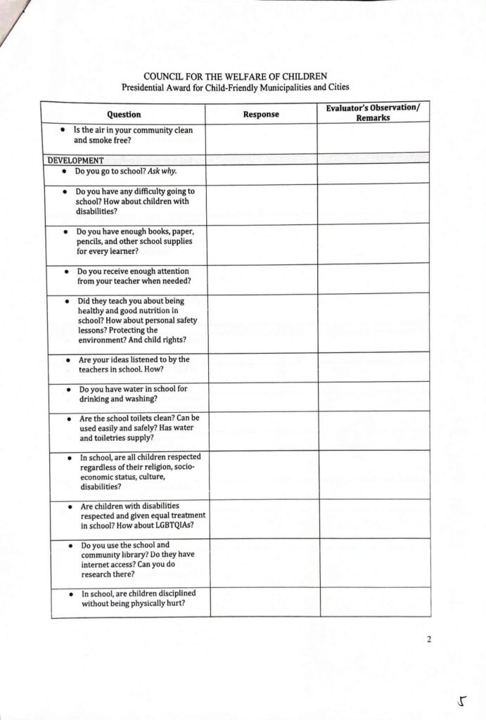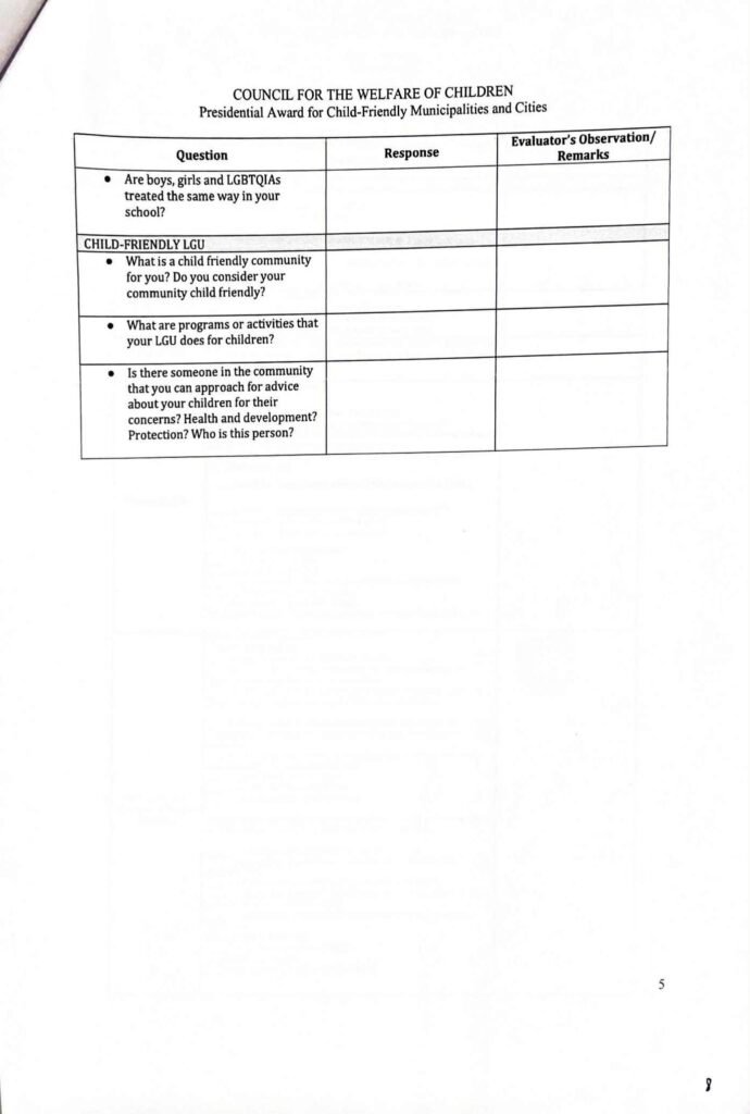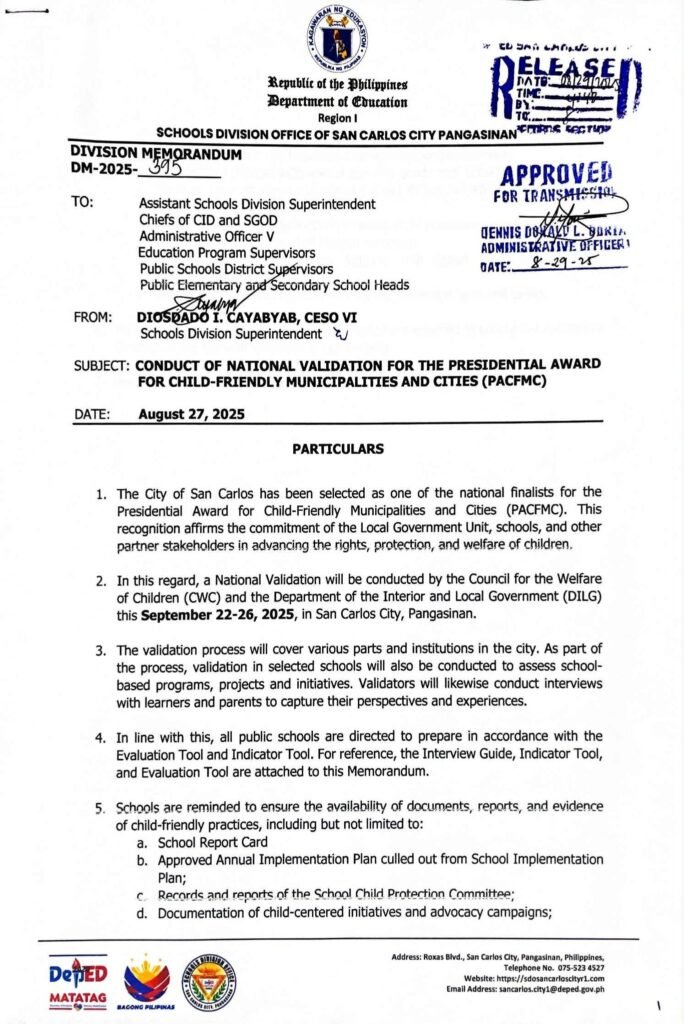 Division Memorandum No. 395 s, 2025 – CONDUCT OF NATIONAL VALIDATION FOR THE PRESIDENTIAL AWARD FOR CHILD-FIRENDLY MUNICIPALITIES AND CITIES (PACMC)