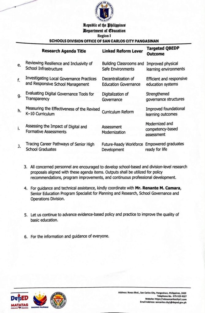 Division Memorandum No. 401 s, 2025 – Adoption of Division Priority Research Agenda SY 2025-2028 Aligned with the QBEDP 2025-2035 Five-Point Reform Agenda