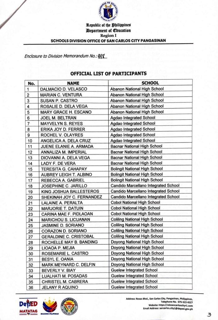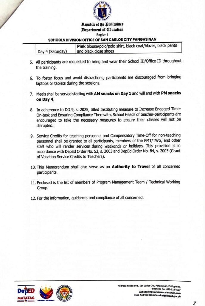 • Division Memorandum No. 084 s, 2025 – REGION 1 ATHLETIC ASSOCIATION MEET 2025