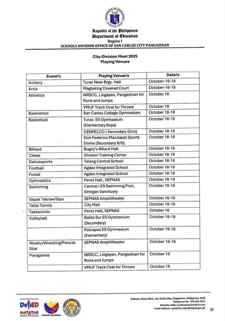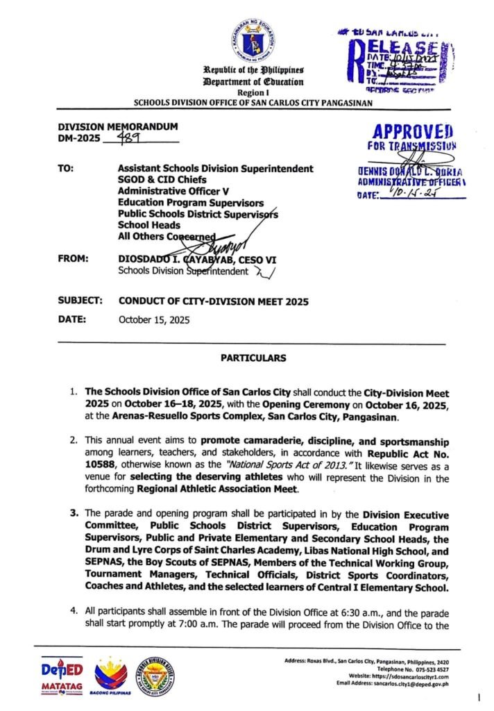 Division Memorandum No. 489 s, 2025 – CONDUCT OF CITY-DIVISION MEET 2024