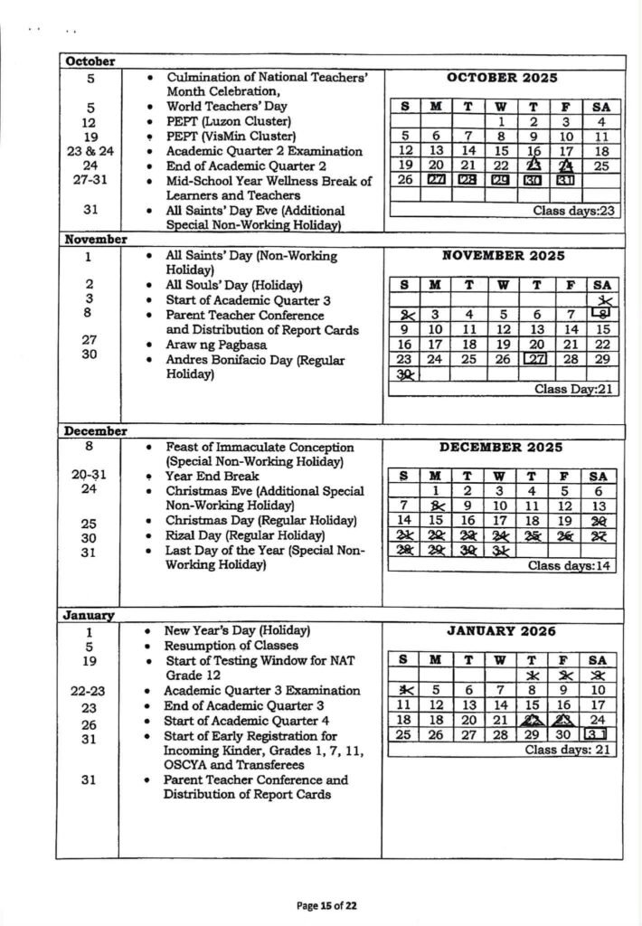 • Division Memorandum No. 044 s, 2026 – CORRIGENDUM TO THE DM NO. 300 s. 2025 RE: QUARTERLY ONLINE MEETING OF SCHOOL COORDINATORS IN ESP/MRC/VE, GUIDANCE DESIGNATES, SPECIAL NEEDS EDUCATION (SNED) TEACHERS, SCHOOL SENIOR HIGH SCHOOL AND ADM FOCAL PERSONS