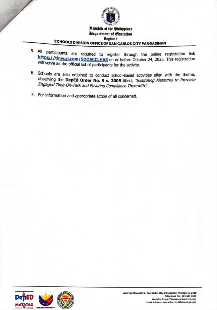 • Division Memorandum No. 041 s, 2026 – REGION 1 ATHLETIC ASSOCIATION MEET 2026