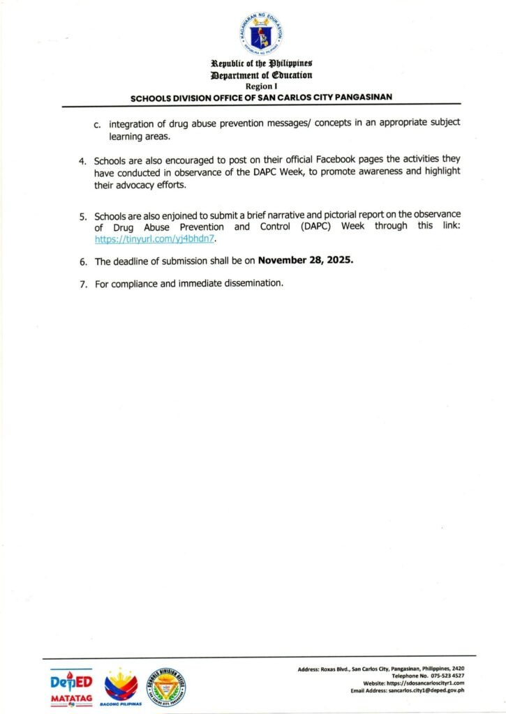Division Memorandum No. 525 s, 2025 – OBSERVANCE OF 2025 DRUG ABUSE PREVENTATION AND CONTROL (DAPC) WEEK