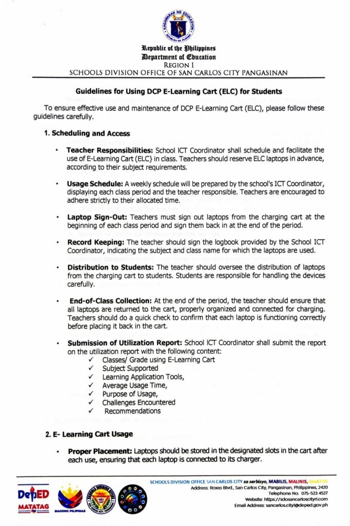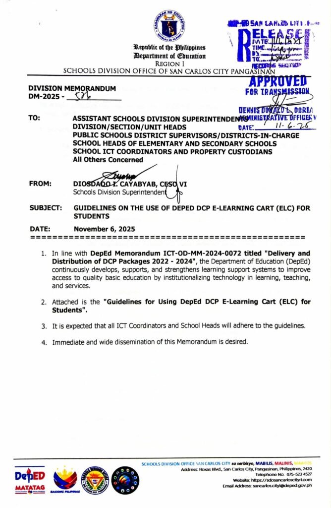 Division Memorandum No. 526 s, 2025 – Guidelines on the Use of DepEd DCP E-Learning Cart (ELC) for Students
