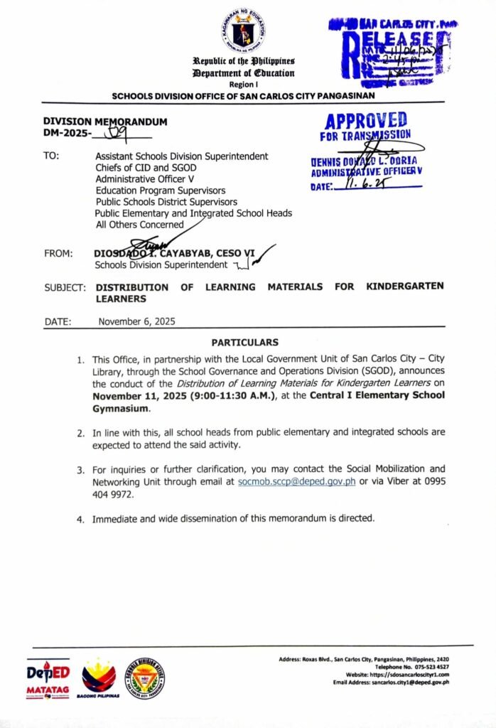 Division Memorandum No. 529 s, 2025 – Distribution of Learning Materials for Kindergarten Learners