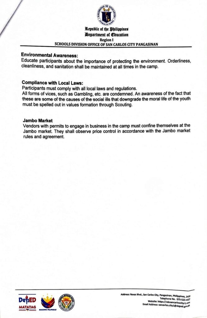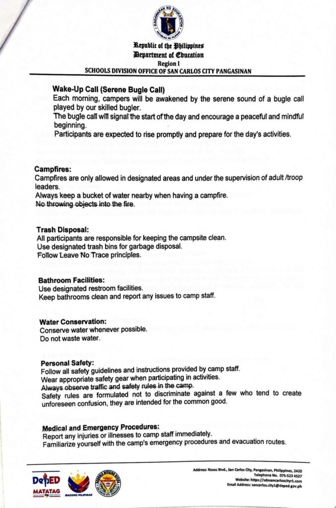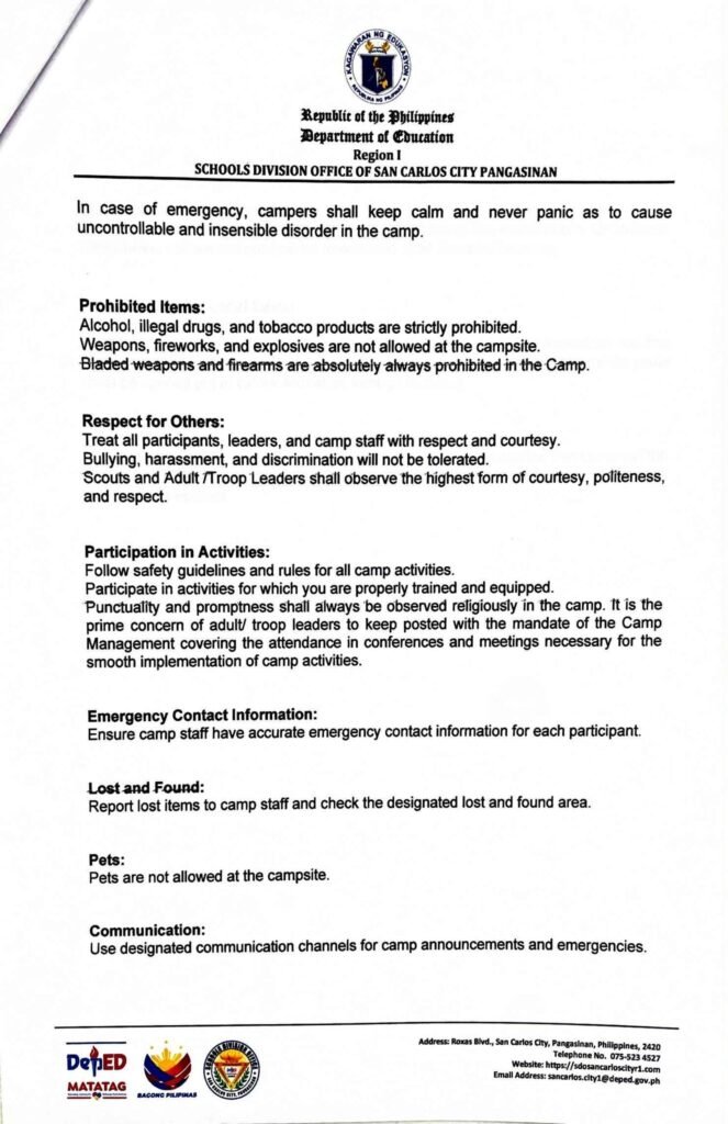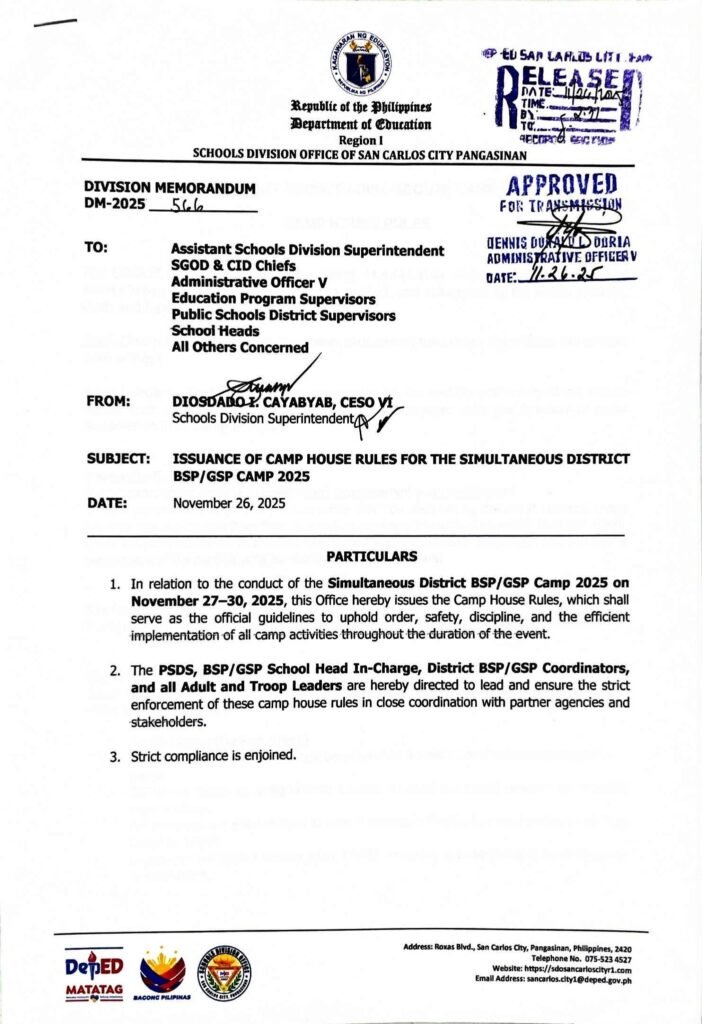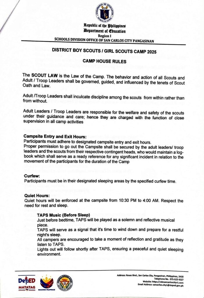 Division Memorandum No. 566 s, 2025 – ISSUANCE OF CAMP HOUSE RULES FOR THE SIMULTANEOUS DISTRICT BSP/GSP CAMP 2025