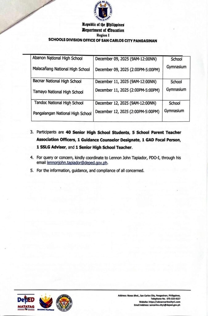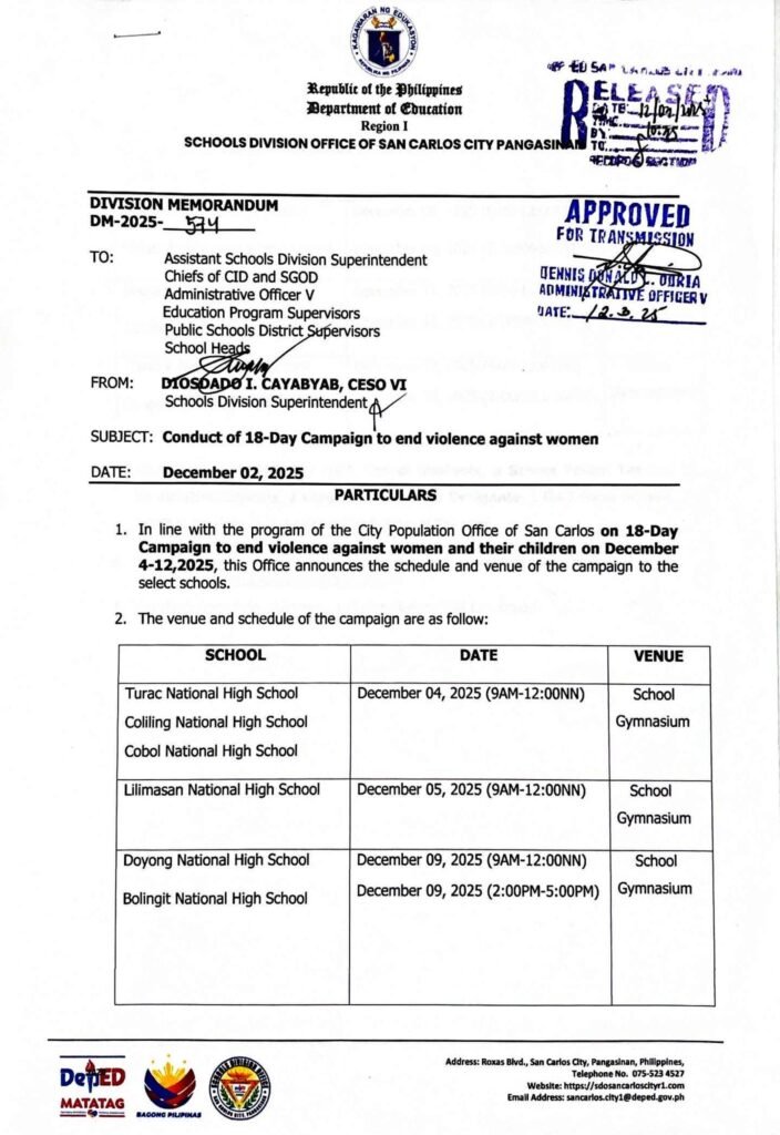 Division Memorandum No. 574 s, 2025 – Conduct of 18-Day Campaign to end violence against women