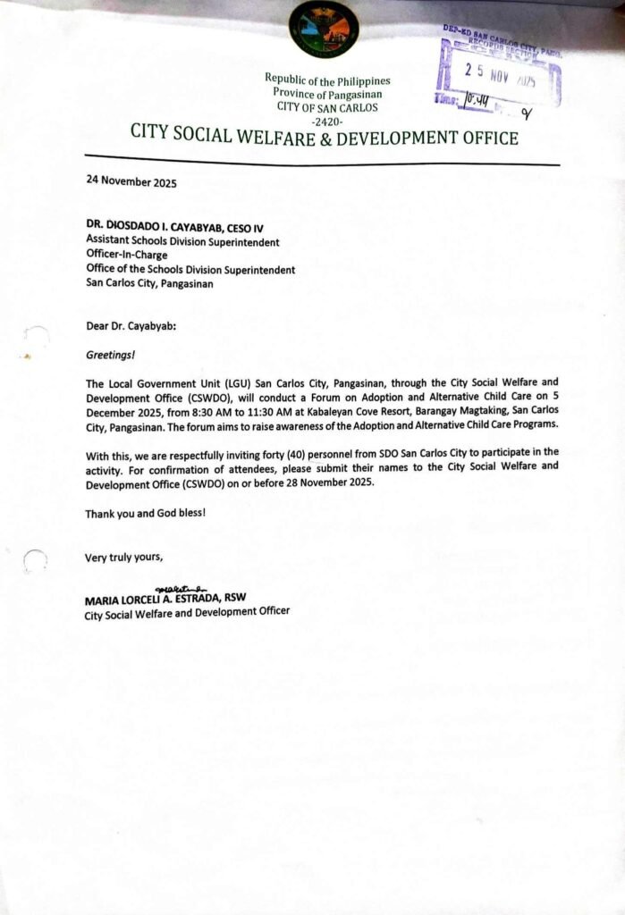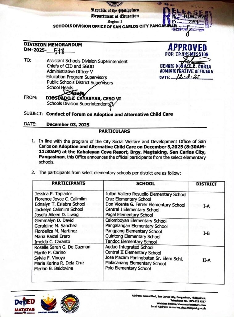 Division Memorandum No. 578 s, 2025 – Conduct of Forum on Adoption and Alternative Child Care