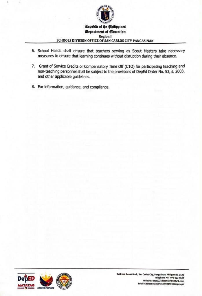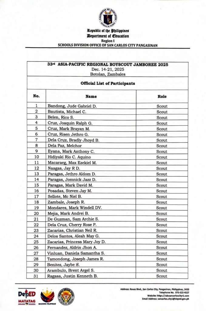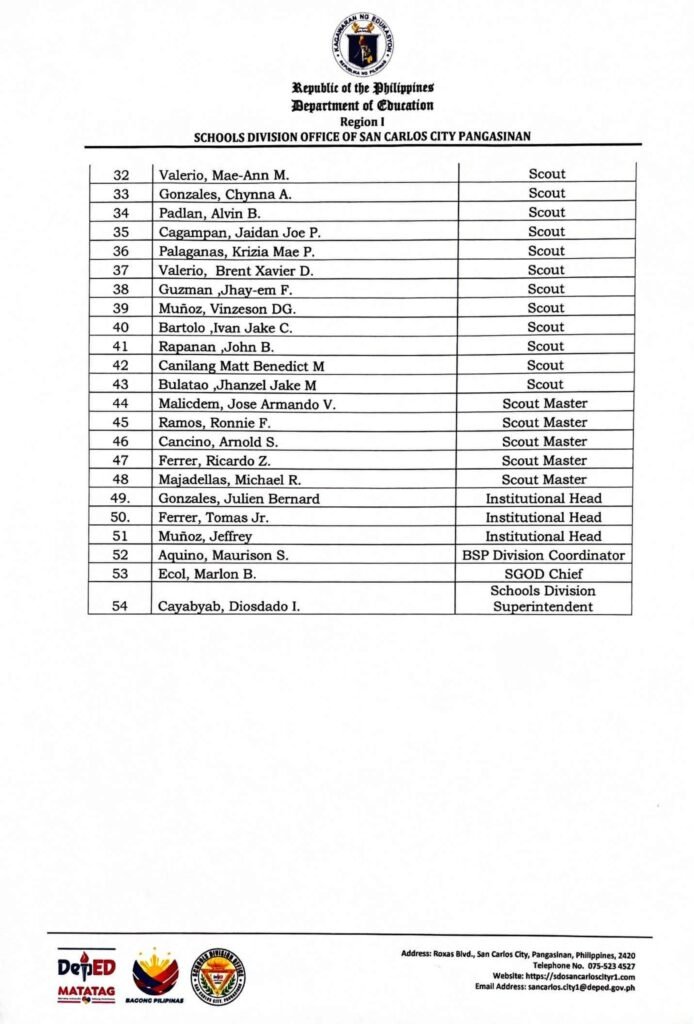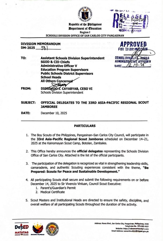 Division Memorandum No. 581 s, 2025 – OFFICIAL DELEGATES TO THE 33RD ASIA-PACIFIC REGIONAL SCOUT JAMBOREE